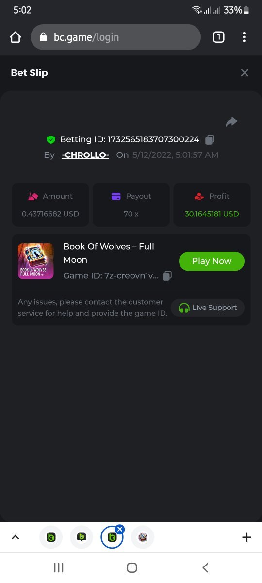 1. https://hash.game/#/sd/10UBS6GX8X29SJ https://bc.game/#/sd/10UI0JQ9CBZ02B