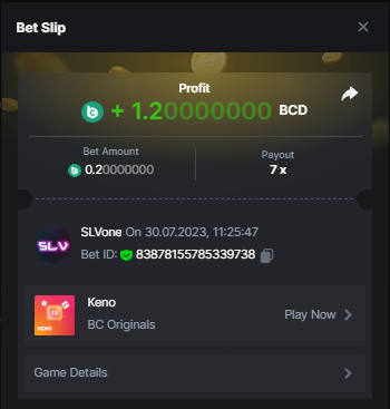 3. Claasic Dice 10x - Done! https://bc.game/#/sd/11VJ56MWLI29FR Wheel 29,7x - Done! https://bc.game/#/sd/11VJ5Q72Z3ZSIN Roulette 36x - Done! https://bc.game/#/sd/11VJ5S8Y0FIEIR Crash 10x - Done! https://bc.game/#/sd/11VJ60FG8HRX9B Baccarat 9x - Done https://bc.game/#/sd/11VJ62N6P39EAJ Run away zombies 10x - Done! https://bc.game/#/sd/11VJ6I29KZD4M3 Enable 2FA for your BC.Game account + Verify E-Mail & Phone Number (If 2FA already activated, keep it activated) - Done! Plinko 76x - Done! https://bc.game/#/sd/11VQX4WTGEGE3J Lucky Easter 30x - Done! https://bc.game/#/sd/11VQYCWN8ZYXJZ Keno 50x - Done! https://bc.game/#/sd/11VQYI7T4ZCK1F