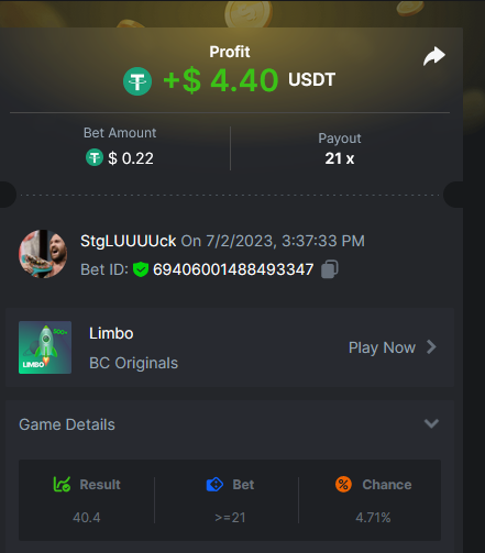StgLUUUUck replied to BCGame_Maxim's topic in Sportsbook Promotions