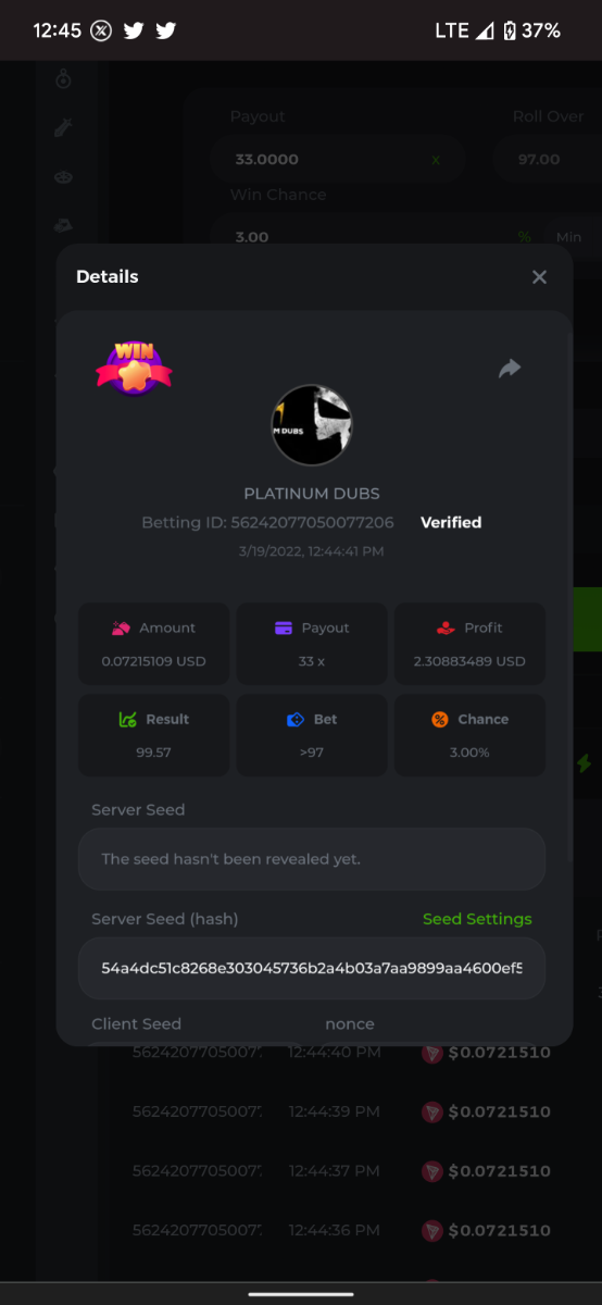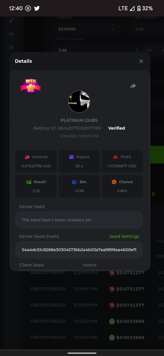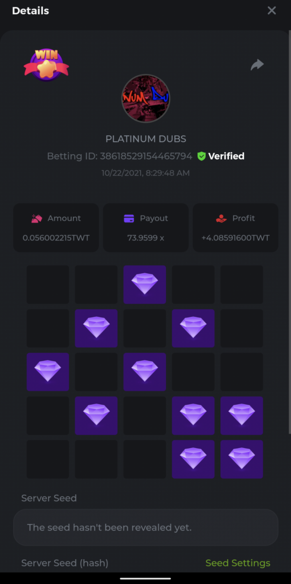 6. Betting ID: 39744648104640636 it would have been alot higher but my phone rotated and I lost 6 free spins they need to fix that shit