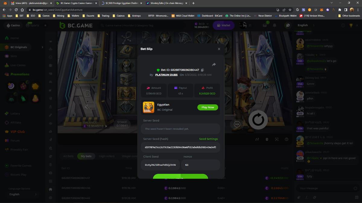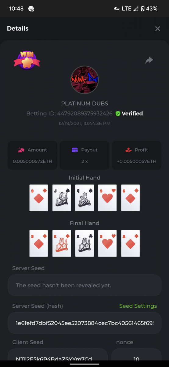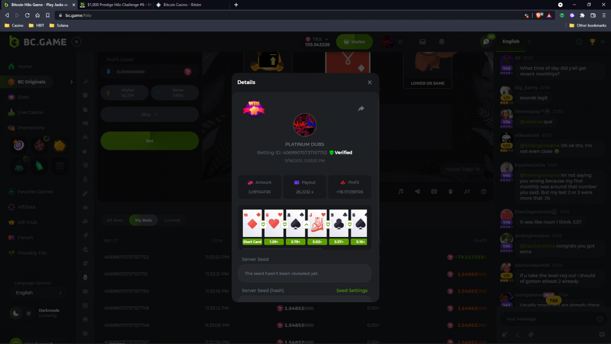 7. Betting ID: 4644773 https://bcgame-project.github.io/bcgame-blackjack/?s=W5kvdHw%2BkSD4o15UOBhdivpb8LHW5jLle1b1r7q1OlE1uV8pHOYquXXrEKFiawcOY3O83qUurpxO%2F2VHxgCKVChI5al%2F%2BJKuPdenqqKJhcjO%2FxuXWkfl%2F%2FF1ugH9sKgNsifeAVMr6N43asyHuotgRwRf29URmPCddKhV6fw7wNc%3D&i=222078&range=205,214