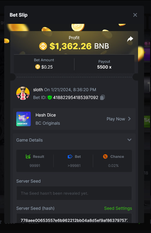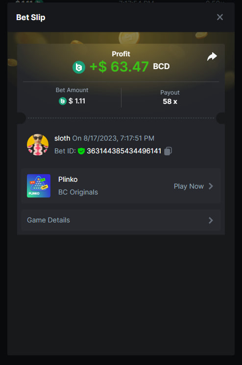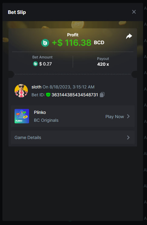 Total Points 30/30 EASY 1 https://bc.game/#/sd/11VO77GATVCCXF 2 https://bc.game/#/sd/11VO36FOYPH48V 3 https://bc.game/#/sd/11VKFQKFWOAMU7 4 https://bc.game/#/sd/11VKM1H288HRNB 5 https://bc.game/#/sd/11VKG5J0NO13JB 6 https://bc.game/#/sd/11VKLQZGL749P7 7 bet id 2388541117525266478 8 https://bc.game/#/sd/11VKH3DCZZR72Z 9 https://bc.game/#/sd/11VKHRDODKPPY3 10 Both done. MEDIUM 1 https://bc.game/#/sd/11VKEFPNPAVZIZ 2 https://bc.game/#/sd/11VKDDJO482EBN 3 https://bc.game/#/sd/11VKE9CI6RTUE7 4 bet id 2388491552407298304 5 https://bc.game/#/sd/11VJN7D9T73JFR 6 https://bc.game/#/sd/11VKERZ2NQWVER 7 * There is a problem with blackjack bet slips. all of the bets in history shows as 0 value in bet slip.blackjack hand is visible at bet slip game info ss .i also added ss of bill showing the bet with game id. bet is 2 bcd. Thank you https://bc.game/#/sd/11VOQRXMFX4X27 8 https://bc.game/#/sd/11VLQJAKYSW9P7 9 https://bc.game/#/sd/11VLS5NLHTDLWB 10 https://bc.game/#/sd/11VLWDXNBYDIRB HARD 1 https://bc.game/#/sd/11VJO4ADTOF1NJ 2 https://bc.game/#/sd/11VMPUDVWNOGCN 3 https://bc.game/#/sd/11VMKBWDTF65NF 4 https://bc.game/#/sd/11VOIUG63W4GGV 5 https://bc.game/#/sd/11VO9PCVEW7R4B 6 https://bc.game/#/sd/11VOO6VJNW78Y3 7 https://bc.game/#/sd/11VMKUB6AK9HJ7 8 https://bc.game/#/sd/11VODUXB33W0GV 9 https://bc.game/#/sd/11VOH4GG3LZ55Z 10 bet id 2385379590152524000