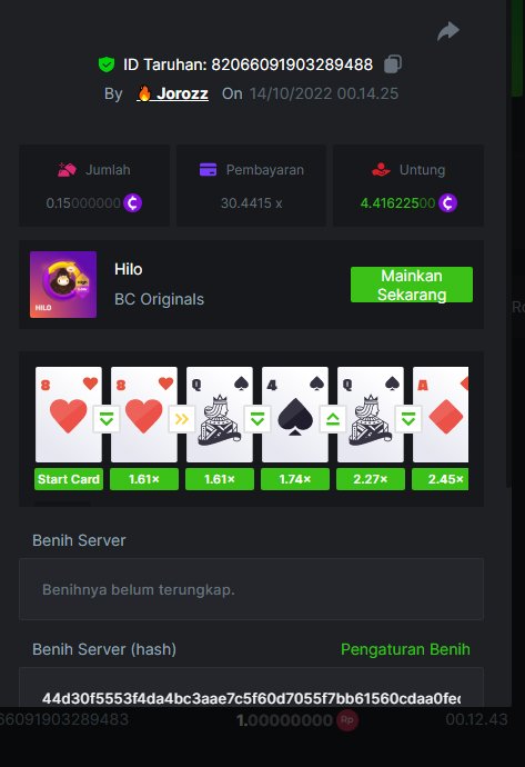 Website URL ( https://bc.game ) Device & System ( Android )(Redmi Note 9) Feedback / Live bug / User experience. ( im found Bug balance in game hilo, pleasse fix it sir. Balance up if play game hilo start in zero balance) Journey ( Balance up if play game hilo start in zero balance ) Screenshot Video ( this is detail in video https://youtu.be/ELNd2sEhrHI )