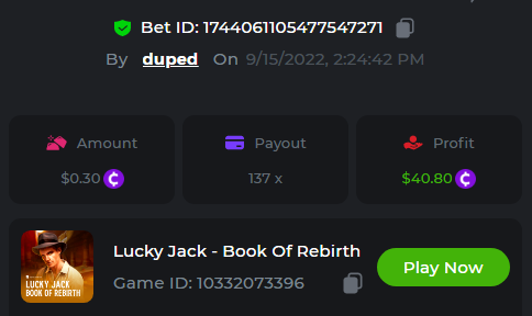 Book Of Muertos - $0.10 Fortuna de los Muertos II - $0.20 Retro Muertos - $0.20 Book of Skulls - $0.10 Origins of Lilith - $0.25 https://bc.game/#/sd/10WGUX7U3X7MKZ