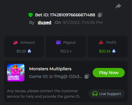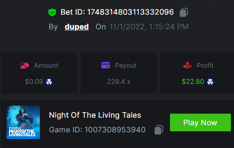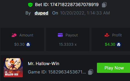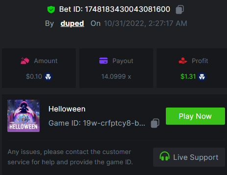 https://bc.game/#/sd/10W6REUZ1GA70Z https://bc.game/#/sd/10W6S1JEWS31G3 https://bc.game/#/sd/10WA6WZF0RQMFN https://bc.game/#/sd/10WACS6UJU6CK3 https://bc.game/#/sd/10WB76XTPRKEMR Undead Fortune - $0.10 Halloween Jack - $0.20 Book of Pumpkin - $0.10 Zombie Carnival - $0.20 Zombie Circus - $0.20 Wolf Night - $0.25 Mr. Hallow-Win - $0.30 Tombstone R.I.P. - $0.10 Guises of Dracula - $0.40