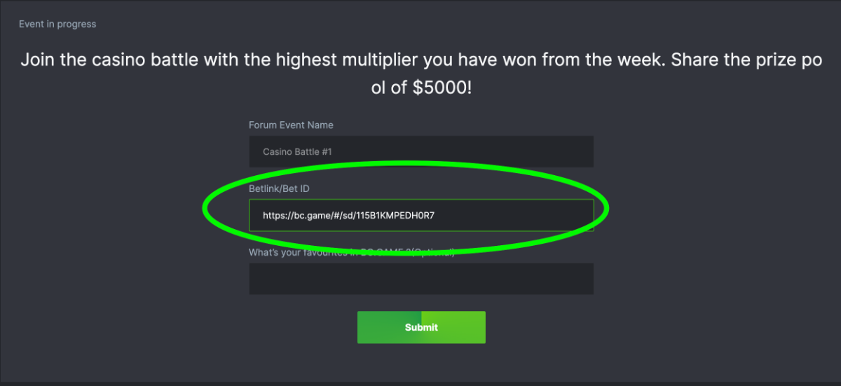 $15,000 GRAND CASINO BATTLE DURATION: 12th APR - 22nd APR Hey VIPs! We are thrilled to announce the launch of multi provider grand casino battle with whooping prize pool of $15,000! Top 80 participants will be enjoying the great rewards this time and top player will take home $1,800. Keep on reading below to find out the participating games and rules of this battle and good luck! Participation must be done at: https://bc.game/promotion/22 Participating Games Win the highest multiplier on the games listed below: Bonus buys are allowed. If the player submits multiple winning entries, the entry which is submitted last will be counted! How to Enter Please access this link to submit your entries: https://bc.game/forum_event/4DECA5F47D5B9B25 You need to fill in the bet link of your winning bet on the above link to participate in this campaign. NOTE ONLY BETLINKS WILL BE VALID If you win higher multiplier after submitting the entry, you can again post new entry on same link (the old entry will be deleted) How to obtain Betlink Click on the bet ID on the transaction history Click on the Share icon (↷) next to your Bet ID Select “Copy link” Then, paste the Betlink onto the opt-in form Minimum VIP Tier Must be VIP04 or higher in order to enter this event. Minimum Payout Minimum payout to qualify is 10x (in any game) for a valid entry. Minimum Bet Amount Minimum bet $0.50 Eligible Coins All cryptocurrencies are eligible (excepting JB, and BCL). Free Play Mode is not valid for this event. Prize Pool Distribution GENERAL TERMS All entries must be submitted on this link: https://bc.game/forum_event/4DECA5F47D5B9B25 once you enter the new bet the old one will be deleted automatically and we will only be able to check last submitted bets only. Bets must be posted within 24 hours of placing bet in order to keep things fair for everyone. Bets must be made during the specified time window stated above. This thread will lock automatically when the time period is over. One (1) entry per household. Anyone found attempting to win multiple prizes will be disqualified from this challenge as well as all future challenges. Failure to follow instructions will result in your submission being null and void. By entering this challenge, you acknowledge that BC.GAME has the final decision on results and placement. Payouts will be distributed after the event is finished. Please note that it could take 72 hours - 7 days after the completion of the event.
