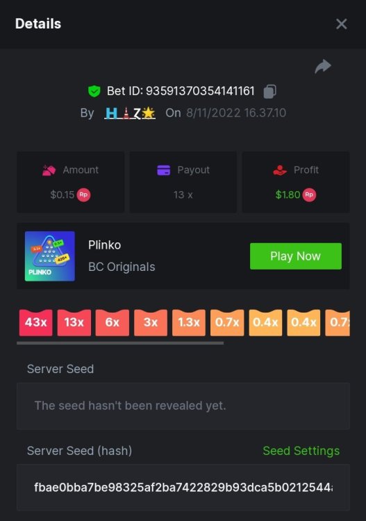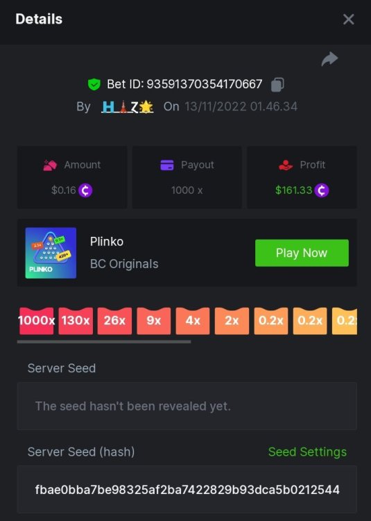 3. 11x https://hash.game/#/sd/10WRNTXRHCBEOJ 13x https://hash.game/#/sd/10WQWVBI9CCQVN 1000x https://hash.game/#/sd/10X1ROTK59OXZN