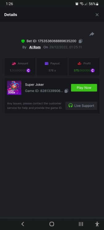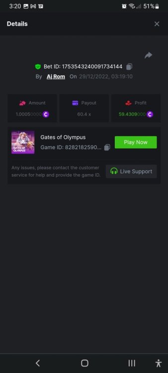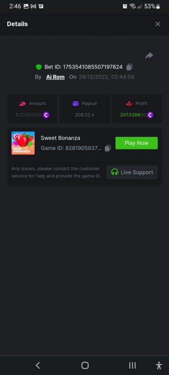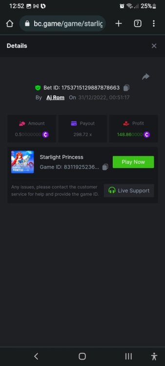 Sorry but I cannot recover the share link of lucky score, I only have the screenshot.... https://bc.game/#/sd/10Y8IDZJRSDJBN https://bc.game/#/sd/10Y5XWIGT1OI6R https://bc.game/#/sd/10Y5W1MI96Z3MB https://bc.game/#/sd/10Y5TH8IEPF7YR -
