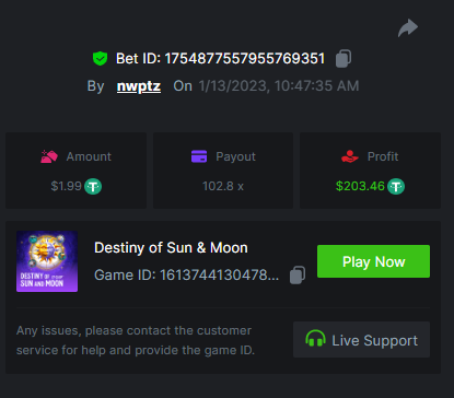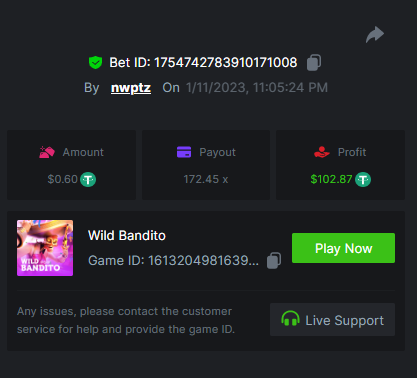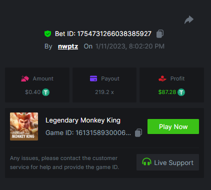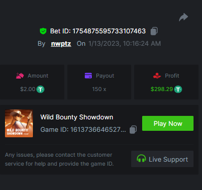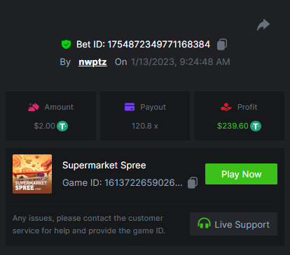 Bet ID: https://bc.game/#/sd/1119PMTXCPKV0Z