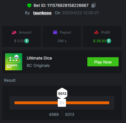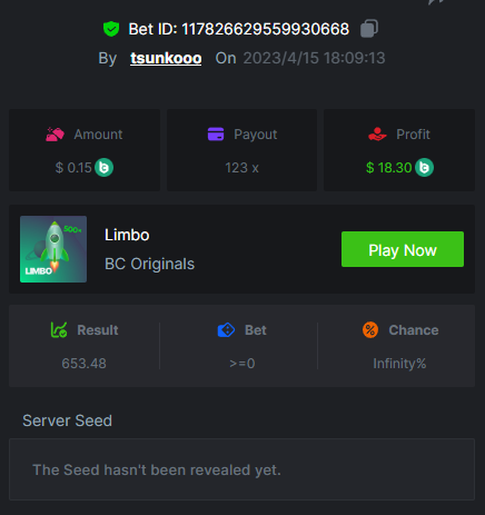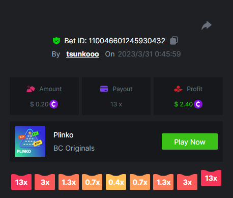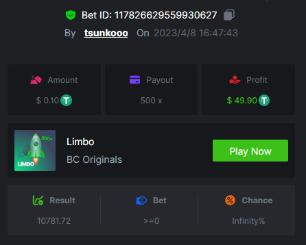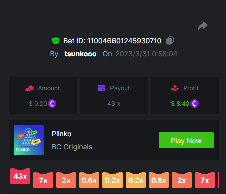 8. Bounty : yes max multiplier : 389.1731 x https://bc.game/#/sd/115VUTRGSUE42B https://bc.game/#/sd/115VVWQ8HP6WIB