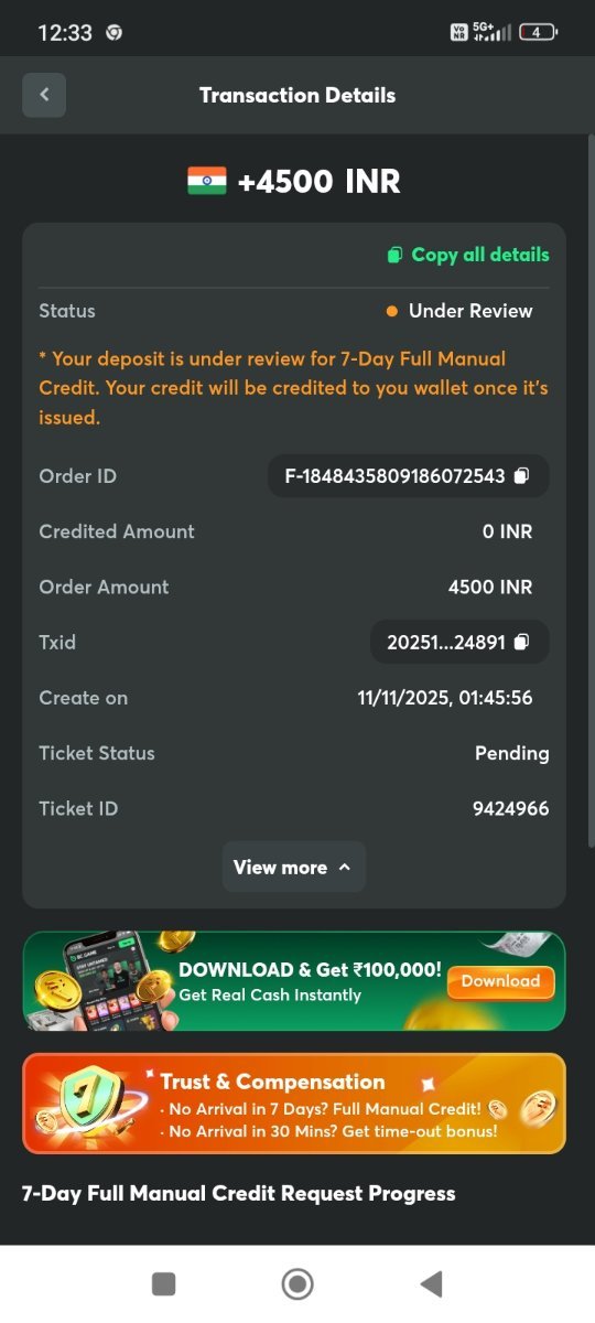 My deposit amount not received yet please my deposit amount credited quick