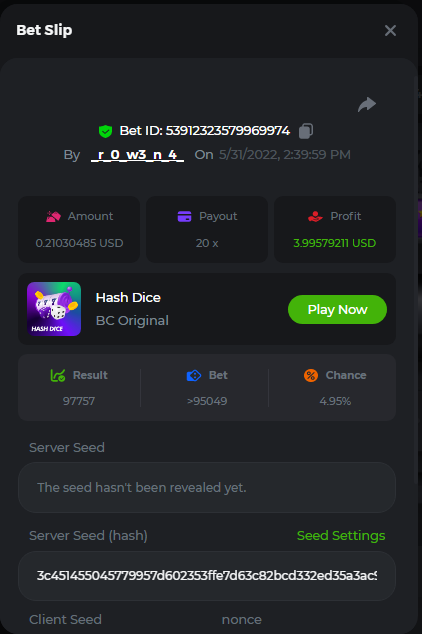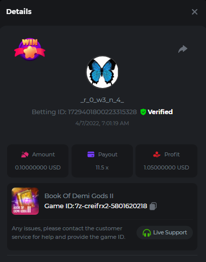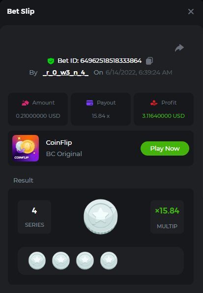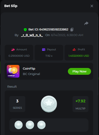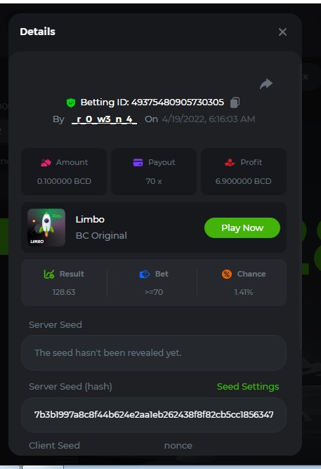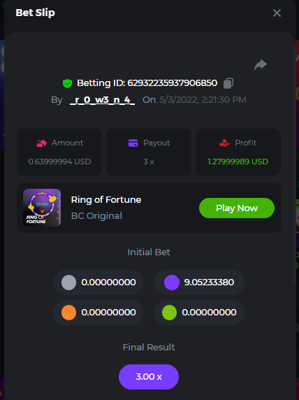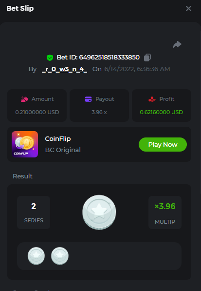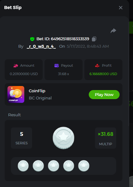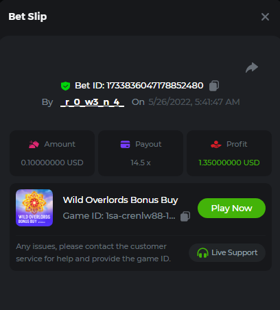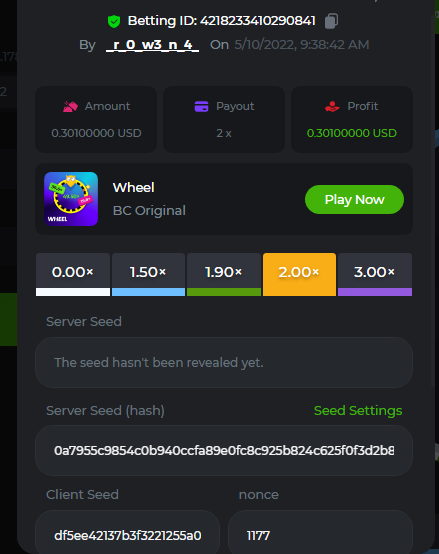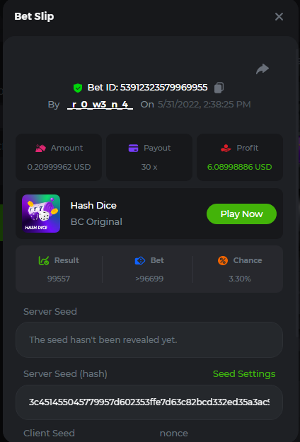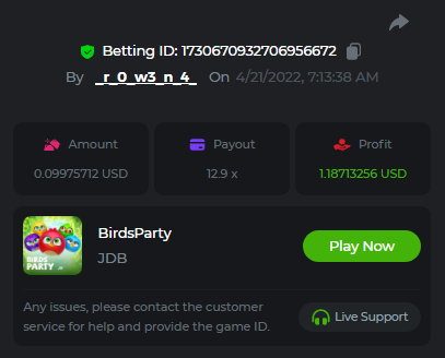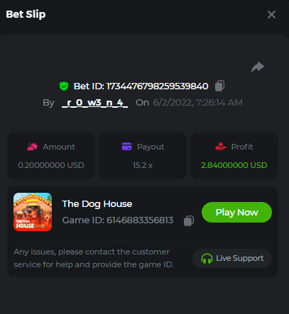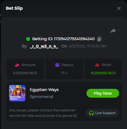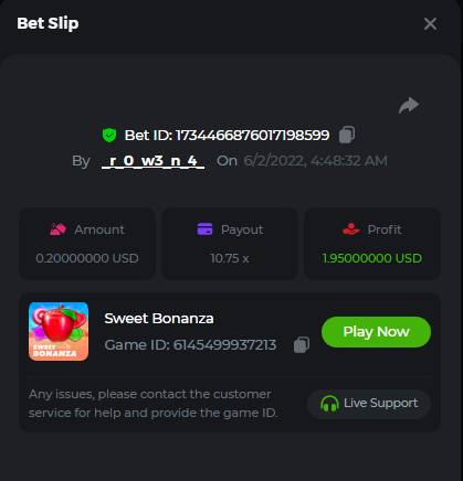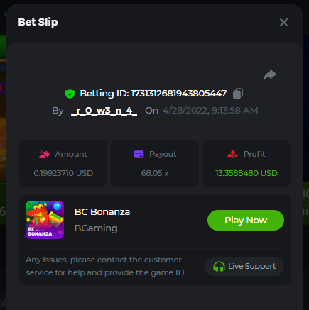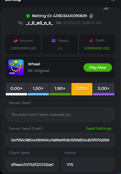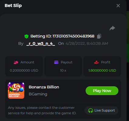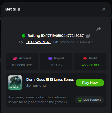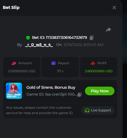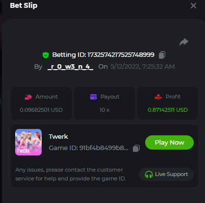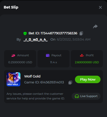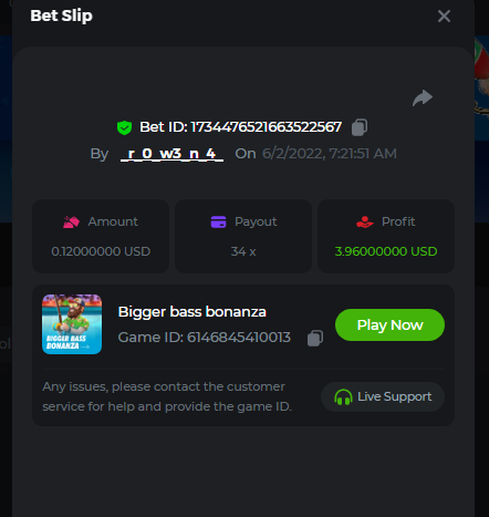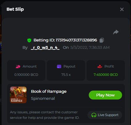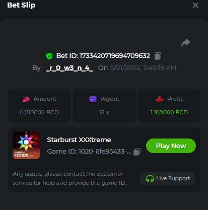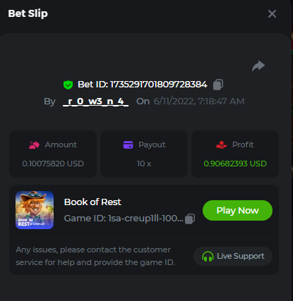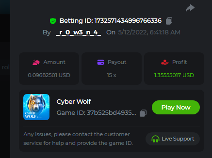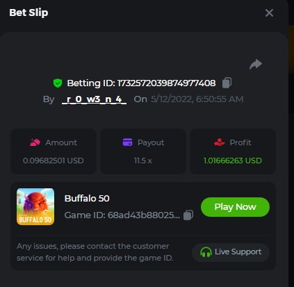 Cyber Wolf - $0.10 https://bc.game/sd/?sd=10KBR7YN1LUS5V Buffalo 50 - $0.10 https://bc.game/sd/?sd=10KBRTFM8873MB Rooster Fury - $0.10 https://bc.game/sd/?sd=10KBSECKX0W7PV Satoshi's Secrets - $0.10 https://bc.game/sd/?sd=10KBSQ1UPMETJN Little Panda - $0.40 https://bc.game/sd/?sd=10KBTP2MP6N6DV Twerk - $0.10 https://bc.game/sd/?sd=10KBTYJWCRRAQB this slot provider will be place into my NOT good slots XD -