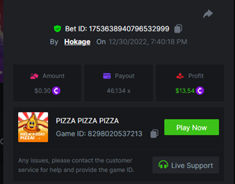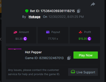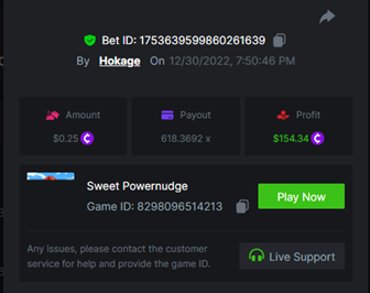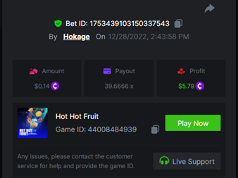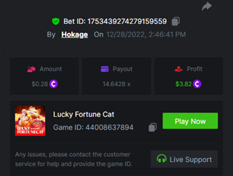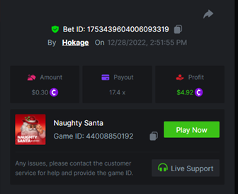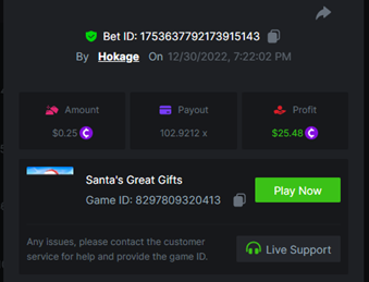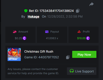 Christmas Gift Rush - 41.00x https://bc.game/#/sd/1106HUV436QZ2R Happiest Christmas Tree - 53.01x https://bc.game/#/sd/1106I1YS5JH1QR Hot Hot Fruit - 39.67x https://bc.game/#/sd/1106IEVPIWRJF7 Lucky Fortune Cat - 14.64x https://bc.game/#/sd/1106ILJBX9MI37 Naughty Santa - 17.40x https://bc.game/#/sd/1106IW4WL0CS9F