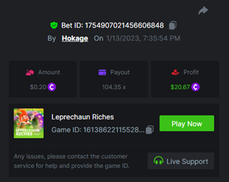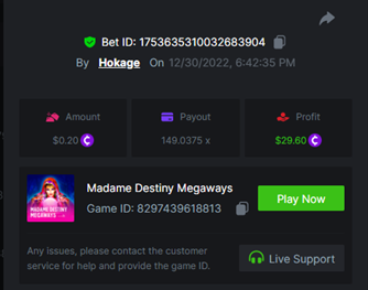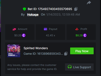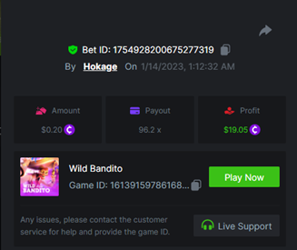 Wild Bounty Showdown - 32.25x https://bc.game/#/sd/111B6F107027F7 Candy Bonanza - 165.90x https://bc.game/#/sd/111B7658VJJ7DF Leprechaun Riches - 104.35x https://bc.game/#/sd/111ANT1JW5FSIB Spirited Wonders - 42.45x https://bc.game/#/sd/111B7UMC4I3H1V Butterfly Blossom - 96.25x https://bc.game/#/sd/111B848S23KR9V Supermarket Spree - 41.75x https://bc.game/#/sd/111B8D4HVE3K7N Wild Bandito - 96.20x https://bc.game/#/sd/111B8N4ZXQG36B Destiny of Sun and Moon - Prosperity Fortune Tree - 69.00x https://bc.game/#/sd/111B92CQP9XBMB Legendary Monkey King - 25.15x https://bc.game/#/sd/111B8U7CEQSVTF