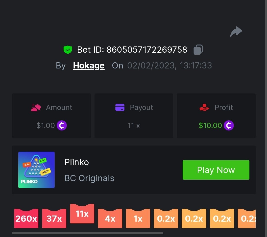 | 11x | 13x | 22x | 29x | 33x | 37x | 43x | 58x | 76x | 88x | 110x | 120x | 170x | 260x | 420x | 620x | 1000x | 11x - https://bc.game/#/sd/112NKEXM0GWLXV 13x - https://bc.game/#/sd/112R2BXPVUWZKJ 22x - https://bc.game/#/sd/112R3FMQLGBK0J 29x - https://bc.game/#/sd/112NINAW72P7V7 33x - 37x - https://bc.game/#/sd/112R3S2UNE826R 43x - https://bc.game/#/sd/112NJC4AF86O0J 58x - 76x - https://bc.game/#/sd/112NKBS288ON4J 88x - 110x - 120x - 170x - 260x - 420x - 620x - 1000x - -