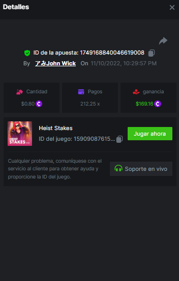 Bounty: Yes Total basebets: $23.39 Average basebet: $4.67 Easy https://bc.game/#/sd/10XJP5KX0S9PUB Médium https://bc.game/#/sd/10X756QG8BW6XF Hard https://bc.game/#/sd/10XGDDXFQXBAC3 Extreme https://bc.game/#/sd/10XHAF0X4UMO7N Nightmare https://bc.game/#/sd/10XJETIMFEQ87N -