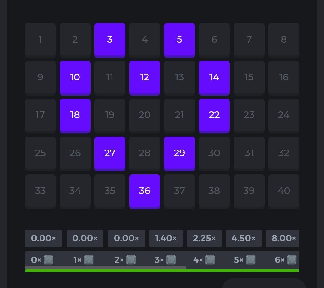 1. keno risk; high only hit with patter like this on any position (hearth). minimum hit; 8 number 8 winner