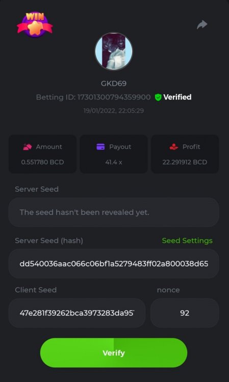 Bet ID: #21679843858974155 (10x) Bet ID: #21679843858974180 (20x) Bet ID: #21679843858974264 (30x) Bet ID: #21679843858974285 (40x - Not sure why it always shows me only 39.9193x O.o) Bet ID: #21679843858974292 (50x)- 53 replies
