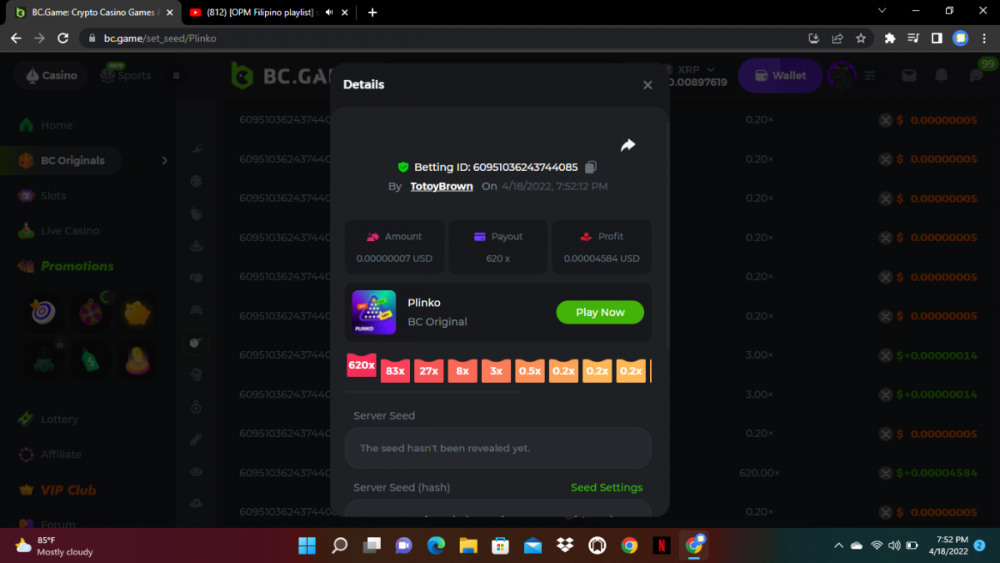 Game:Limbo Hunt: x100 and the last two numbers in the bet id must be 10