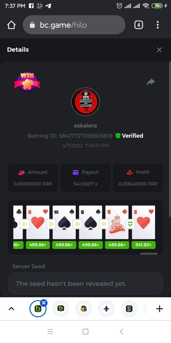 4. Ang paborito kong laro sa bc.game ay HiLo.. dito ko napatunayan na mas may disiplina ako sa sarili pag husto ang aking tulog.. Dahil kapag may sapat akong oras ng tulog, naiiwasan ko ang pagiging gahaman.. pag kulang kase Ang tulog ko, kahit malaking multiplier na, tuloy pa din ako sa pagpili Ng baraha hanggat hindi nauubos ang skip.. that's all, thank you!..