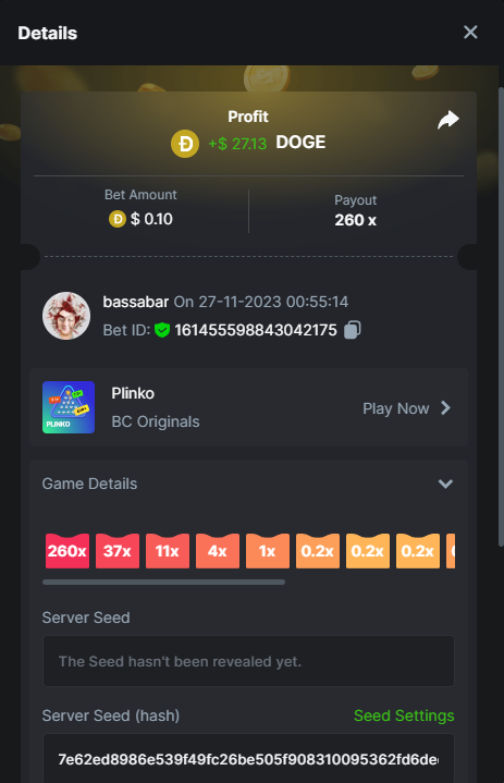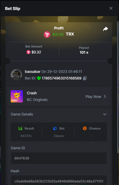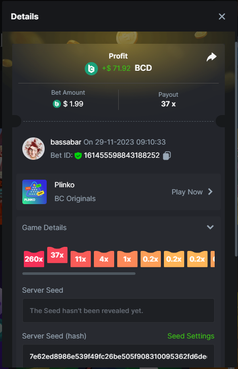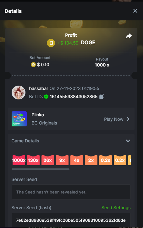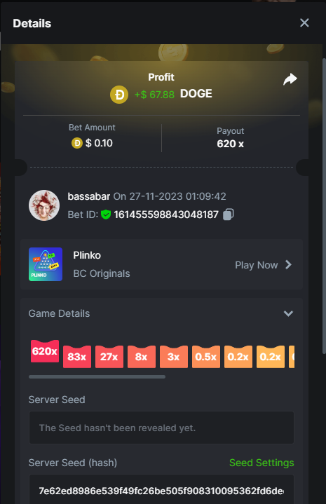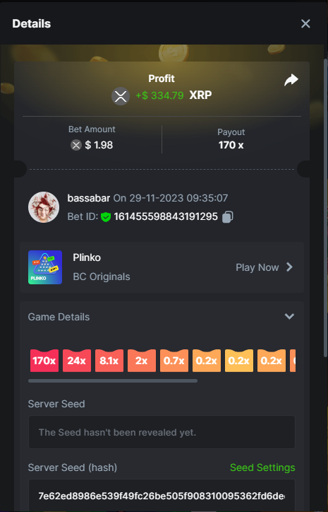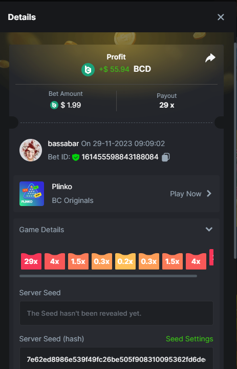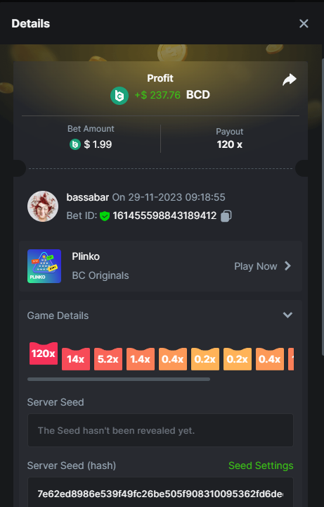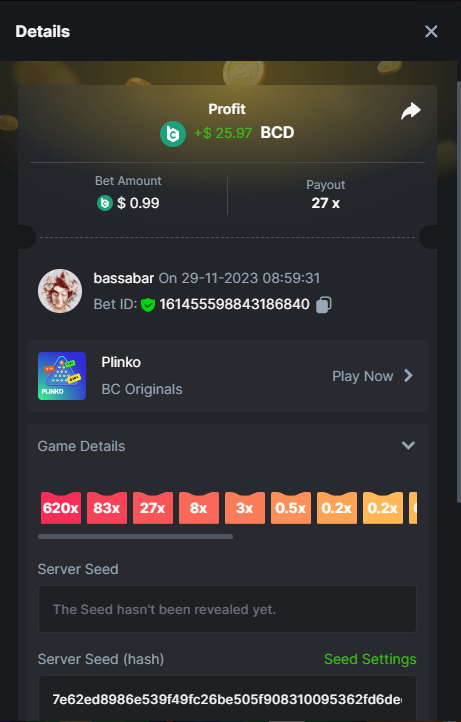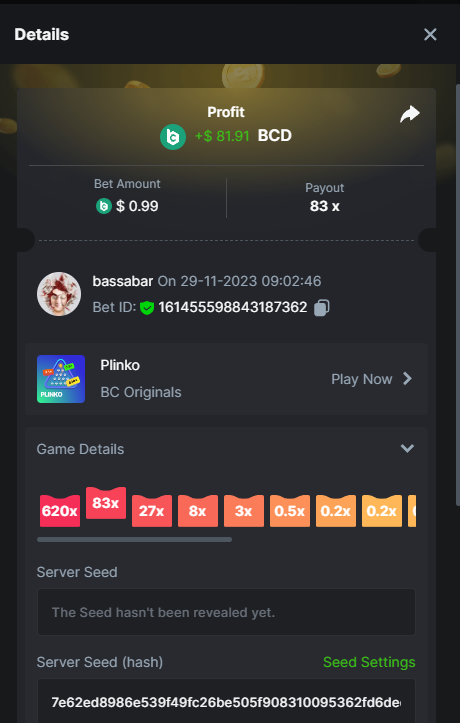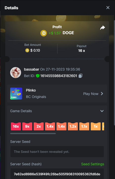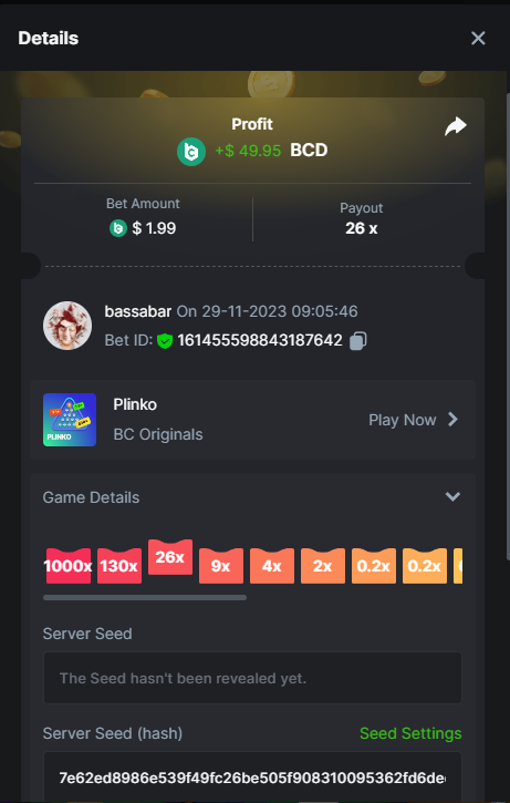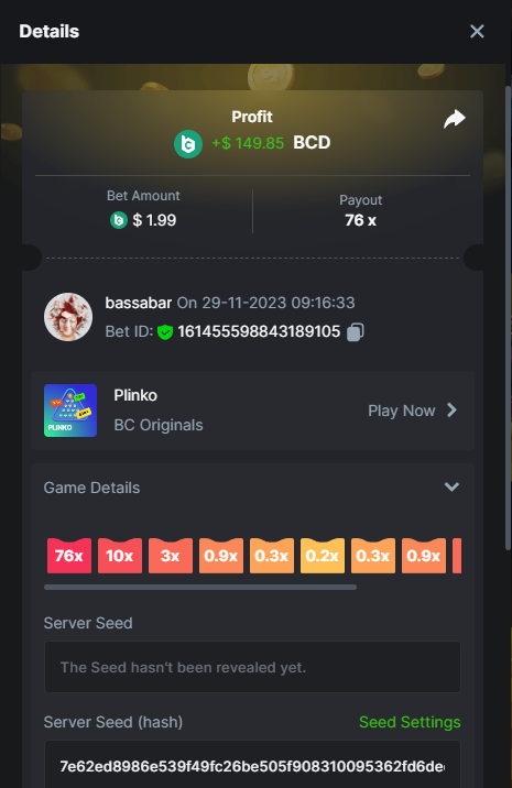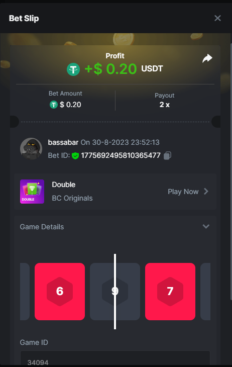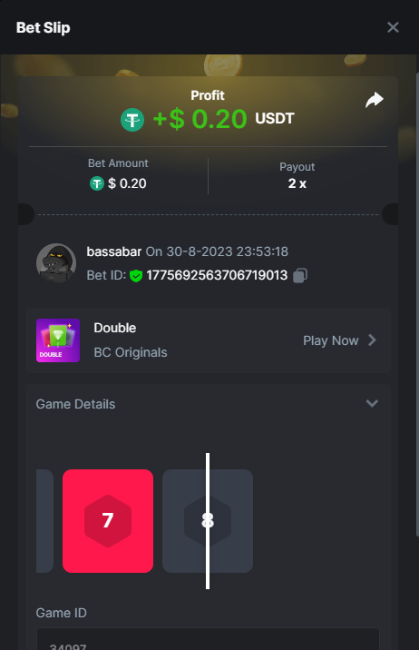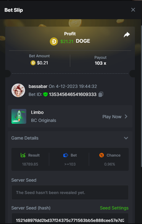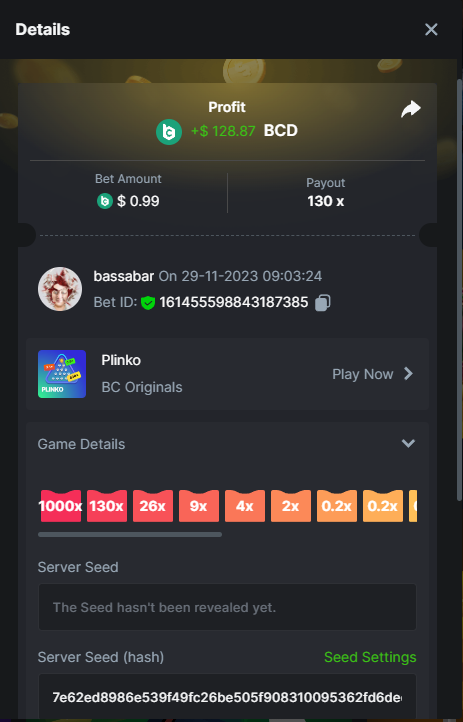 17. @BCGame_Maxim I assume the Game ID has to be consecutive too, otherwise you need to check if there was't any losing bets in between? :