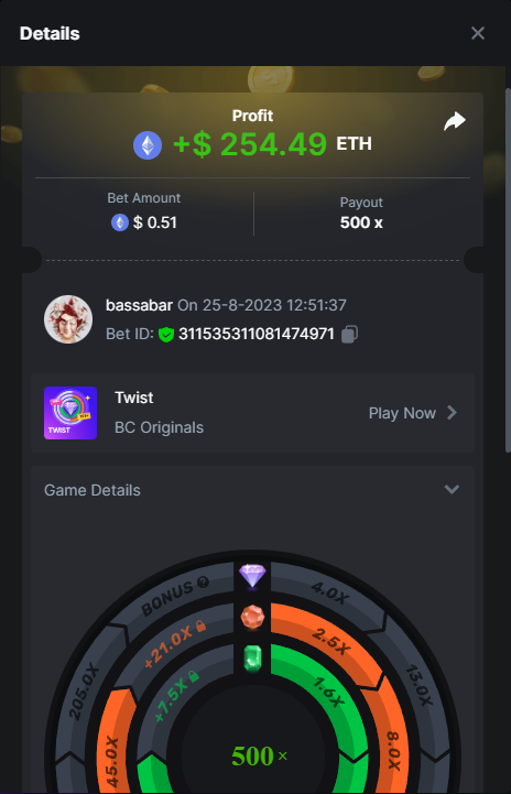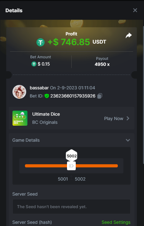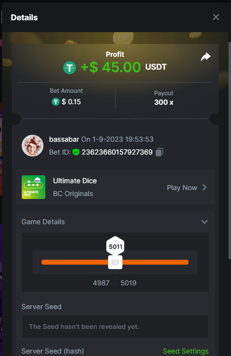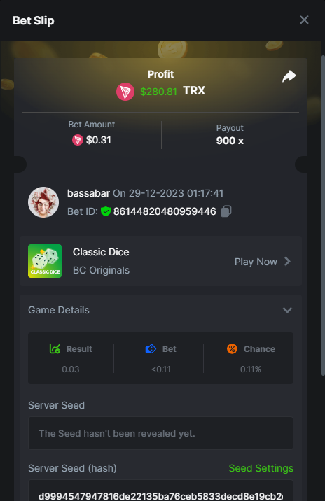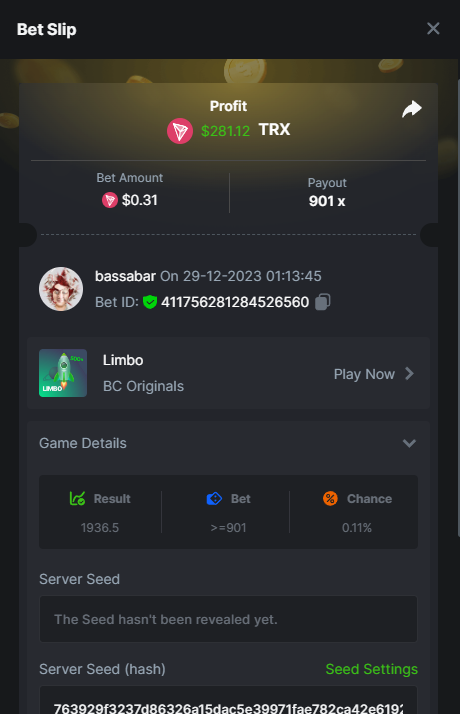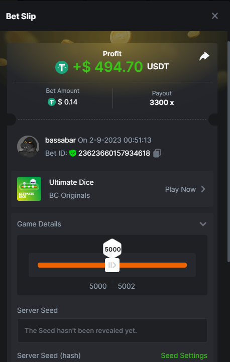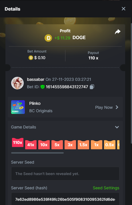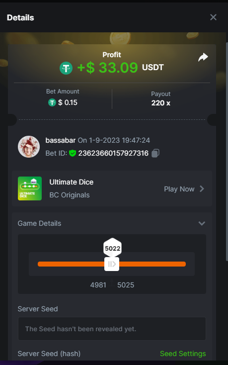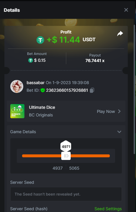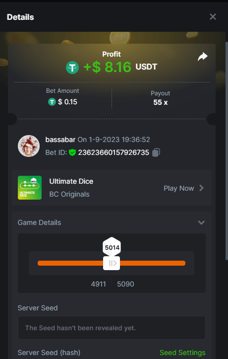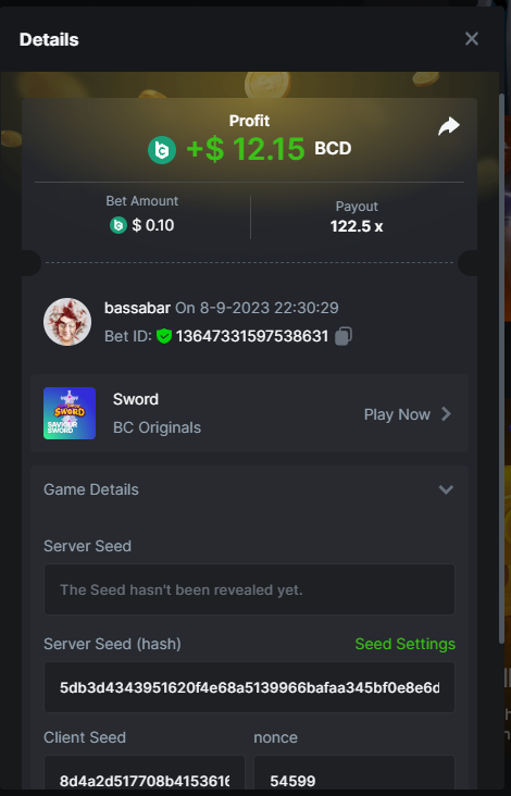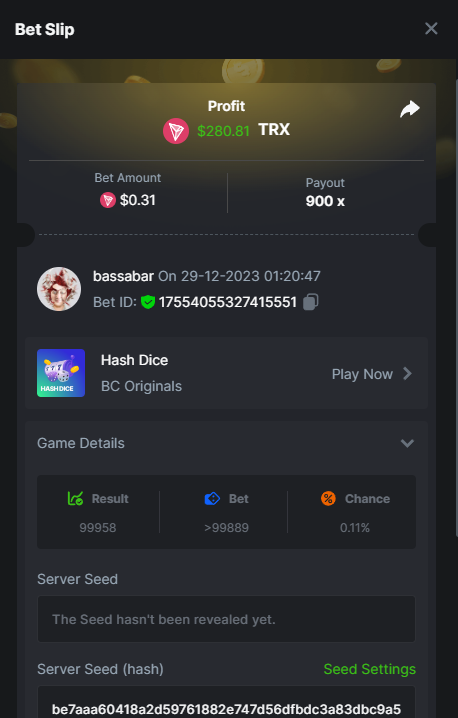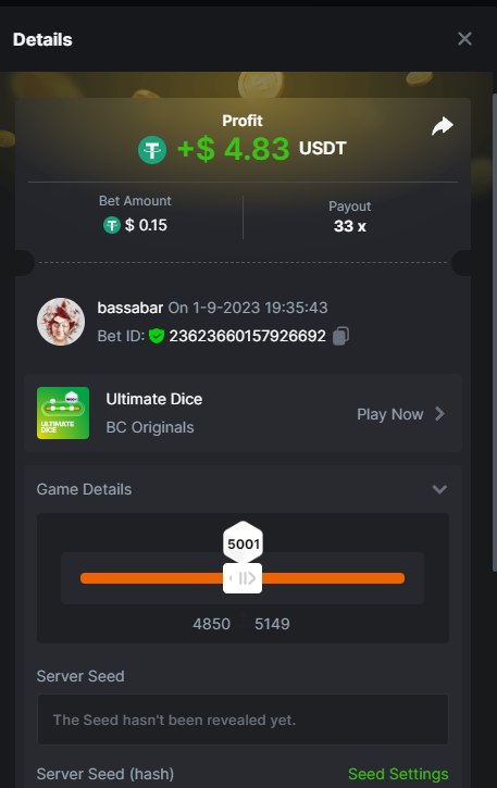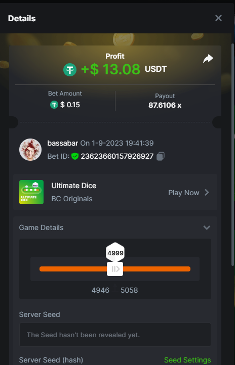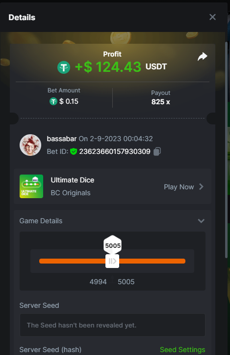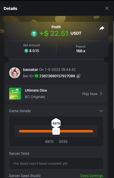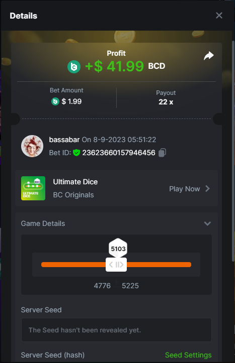 17. @BCGame_Maxim I assume the Game ID has to be consecutive too, otherwise you need to check if there was't any losing bets in between? :