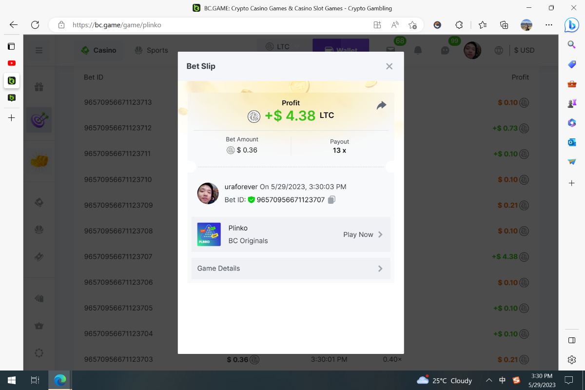 4. Plinko: 11X bet ID: 96570956671123641 13X Bet ID: 96570956671123707 29X Bet ID: 96570956671125067 43X Bet ID: 96570956671125092