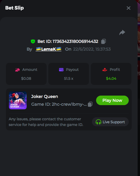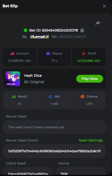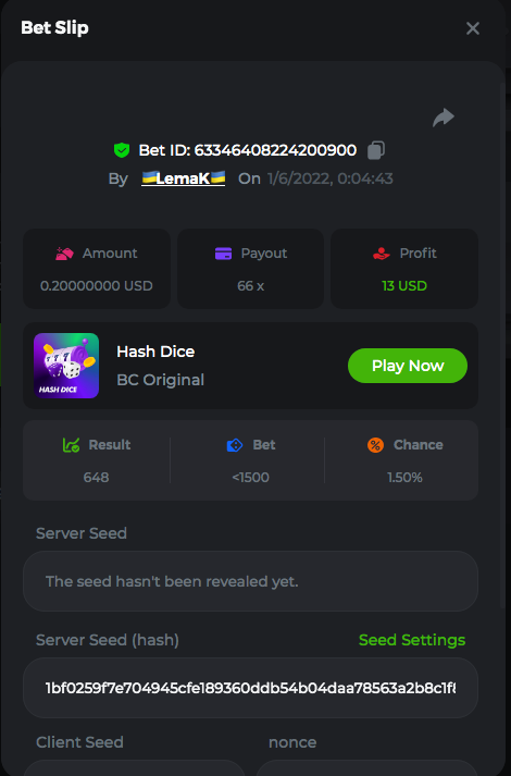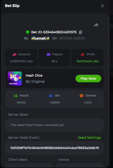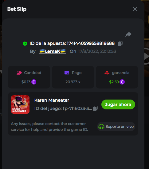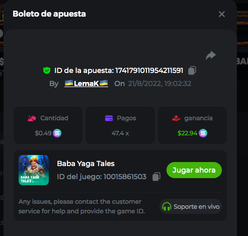 17. Bet ID: 1736003935592656768 https://bc.game/sd/?sd=10MXN23CRBUSCZ Bet ID: 1736342318006914432 51,5X LOL https://bc.game/sd/?sd=10N6WAVKZGUKGJ
