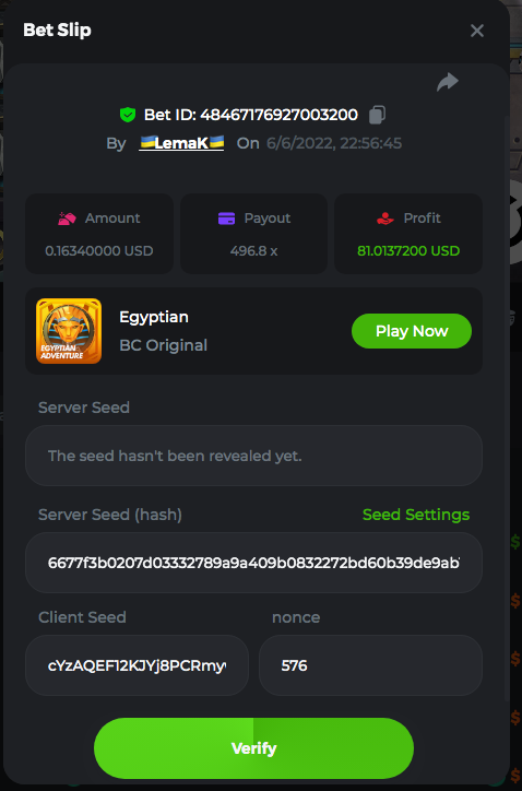19. Arggg 496.8X Bet ID: 48467176927003200 https://bc.game/sd/?sd=10M40EP75FALN7