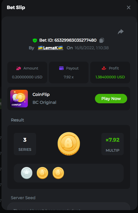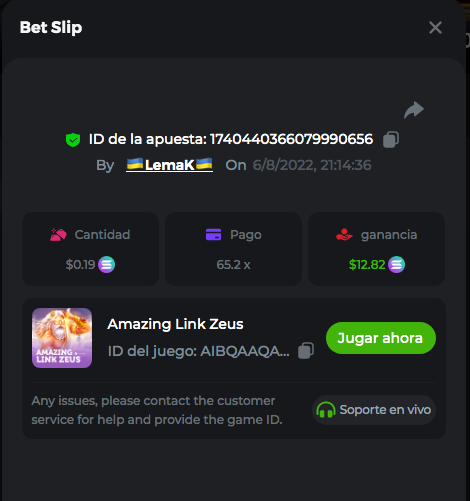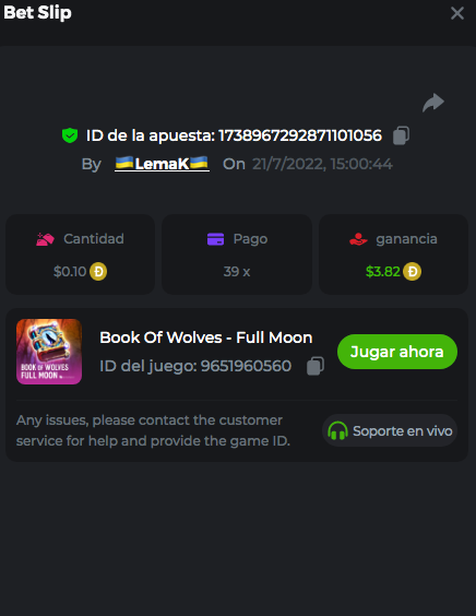 4. https://bc.game/sd/?sd=10QZAG7SY3OZRN Bounty 500X ID de la apuesta: 79915399914717185