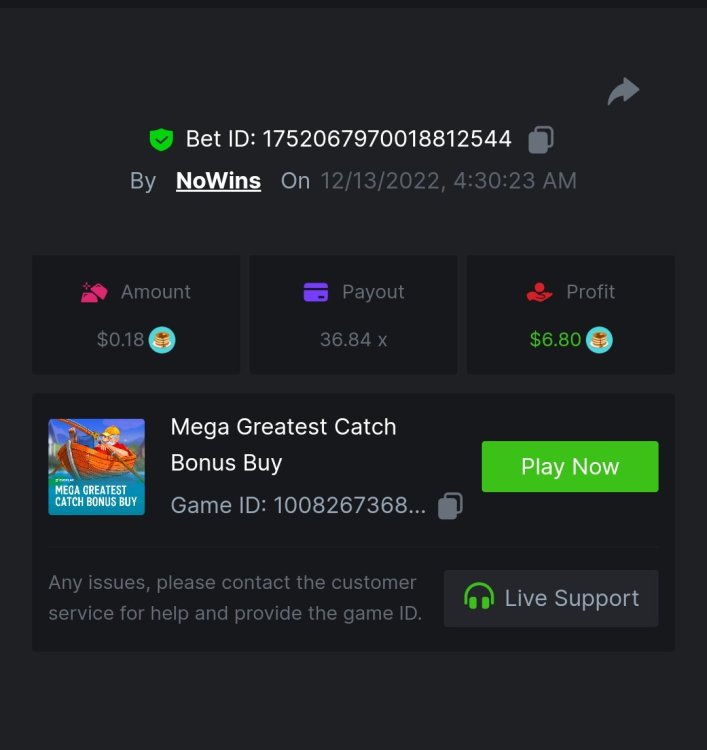 So many games to keep track of these days. This is just preliminary, and for my own sake to see what I've done Sugar rush - 1789.25x Gates of Olympus - 537.25x Sweet bonanza - 879.99x Madame Destiny Megaways - 592.75x Starlight Princess - 1258.31x Santa’s Great Gifts - 421.70x Bigger Bass Blizzard - Christmas Catch - 475.93x Pizza! pizza? pizza! - 600.03x Sweet powernudge - 1118.56x Hot pepper - 419.11x Fury of Odin megaways - 1069.53x Super joker - 189.97x https://bc.game/#/sd/110MGAL2XS7LSJ https://bc.game/#/sd/110FLLJMTWFGUR https://bc.game/#/sd/110KEWRKP5Y9LF https://bc.game/#/sd/110BOIZ04T5DZN https://bc.game/#/sd/110BSJPWHB0AVN https://bc.game/#/sd/110M42STGBYYHF https://bc.game/#/sd/110MX5W6CNXVRN https://bc.game/#/sd/110HTIASYG4S2B https://bc.game/#/sd/110MAWMRYEXV6B https://bc.game/#/sd/110K3EY69MGWER https://bc.game/#/sd/110M2R1YE4WZYR https://bc.game/#/sd/110I8VYSQ5DKIB BOUNTY https://bc.game/#/sd/110BYHKFG8ETQR -