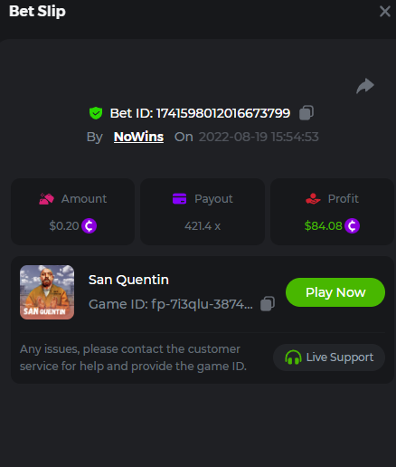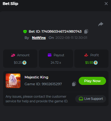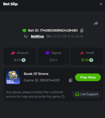 https://bc.game/sd/?sd=10O1GXHIVY1W5V Seriously. Screw this game and all other games from Croco Gaming. With a high minimum bet and that far between wins, It's really no use. After losing a total of $60 playing with $0.5 bet the highest win was 10.2x. No free spins. No bonus. Nope. -