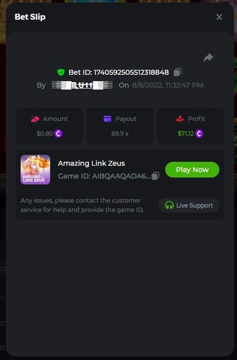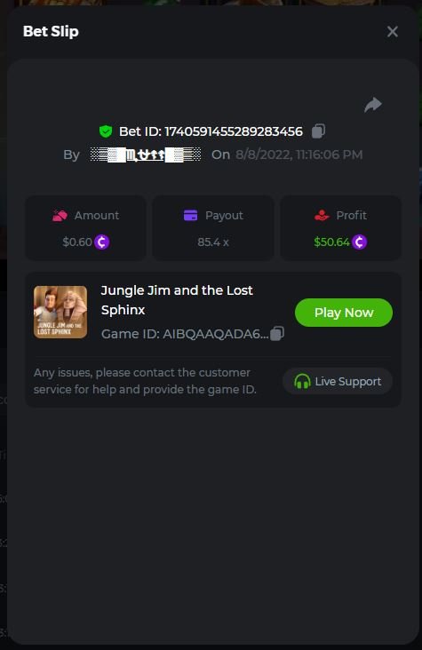 8. Ancient Fortunes Poseidon https://bc.game/sd/?sd=10Q59LZZPPUKUR | 18.39x @ 0.10 Amazing Link Zeus https://bc.game/sd/?sd=10QF54JKORT6OJ | 89.9x @ 0.80 Break Away Deluxe https://bc.game/sd/?sd=10QF27GQ6IWB2R | 11.368x @ 0.38 Immortal Romance https://bc.game/sd/?sd=10QF2BDDT7Y58Z | 20x @ 0.30 Jungle Jim N the lost sphinx https://bc.game/sd/?sd=10QF42PQPO5YQB | 85.4x @ 0.60 Playboy Fortunes https://bc.game/sd/?sd=10QF1WDZSVDNGZ | 15x @ 0.20