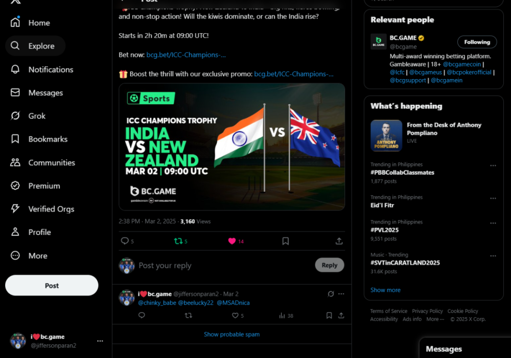 Easy completed: 11/11 Medium completed: 11/11 Hard completed: 11/11 Total completed: 33/33 Easy 2. ig username: jiffersonp easy 3. https://www.instagram.com/jiffersonp/ easy 4. @jiffersonparan2 https://x.com/jiffersonparan2 easy 5. easy 6. https://www.facebook.com/ballseyeaw/ easy 7. https://bcgame.ph/game-detail/1825474207830878241 easy 9. https://bcgame.ph/game-detail/1825474510998464290 easy 11. easy 1. easy 10. https://bcgame.ph/game-detail/1825610654446562338 Medium 7. https://bcgame.ph/game-detail/1825611384110331681 Medium 6. https://bcgame.ph/game-detail/1825611631984648738 Medium 3. https://bcgame.ph/game-detail/1825611672092367137 HARD 1. https://bcgame.ph/game-detail/1825612050961386273 Medium 4. https://bcgame.ph/game-detail/1825612181566462498 HARD 7. https://bcgame.ph/game-detail/1825612609480561699 Medium 2. https://bcgame.ph/game-detail/1825616245620369539 Medium 8. https://bcgame.ph/game-detail/1825704308250754850 Medium 10. BC lottery Medium 9. https://bcgame.ph/game-detail/1825698967837245729 HARD 3. https://bcgame.ph/game-detail/1825714048851447075 HARD 10. https://bcgame.ph/game-detail/1825715885852633889 HARD 2. https://bcgame.ph/game-detail/1825718319664342916 Easy 8. sports easy Ticket ID: 2508875645212303548 Medium 11. parlay sports medium Ticket ID: 2508875645212303548 HARD 4. https://bcgame.ph/game-detail/1825765636213365793 HARD 11. sports parlay hard Ticket ID: 2509084632788635915 HARD 5. https://bcgame.ph/game-detail/1826287027190554657 HARD 8. https://bcgame.ph/game-detail/1826288145496856867 HARD 6. https://bcgame.ph/game-detail/1826293457703849505 Medium 1. HARD 9. https://bcgame.ph/game-detail/1826755181592293153 Medium 5. https://bcgame.ph/game-detail/1826756186923426337