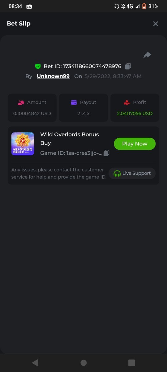 7. Hit the gold Betting ID: 1725059292811470087 Golden dancing lion Betting ID: 1725058790545249152 Tiger jungle Betting ID: 1725058501611886464 Solar queen Betting ID: 1725060468877351552