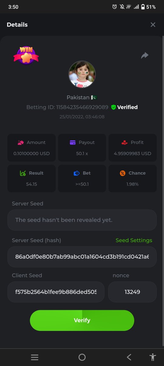 4. Game Hash Dice Result 72072 Minimum payout 100 x