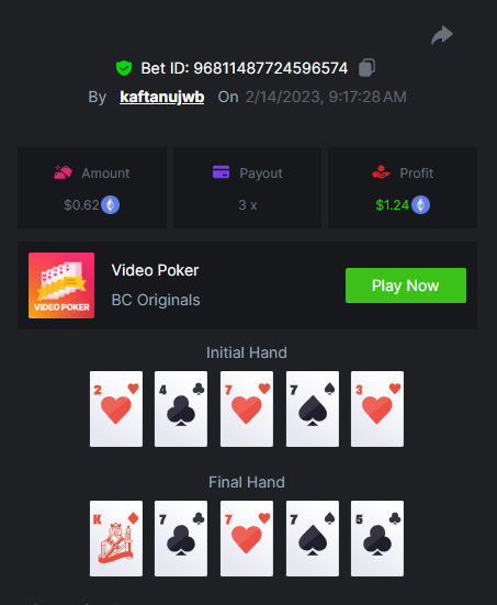 $1,500 Exclusive Mid-week Video Poker Prestige Challenge #69