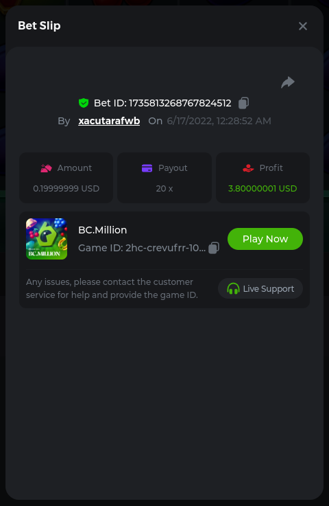#1 Bet ID 64006664956674443 Link: https://bc.game/sd/?sd=10K8G17RGF7GGJ #2 Bet ID 64006664956674444 Link: https://bc.game/sd/?sd=10K8G2MV09AJGZ #3 Bet ID 64006664956674445 Link: https://bc.game/sd/?sd=10K8G4QMXAHL3N #4 Bet ID 64006664956674446 https://bc.game/sd/?sd=10K8G6GUANDGYB
