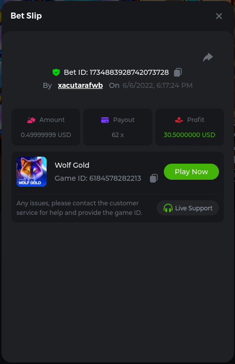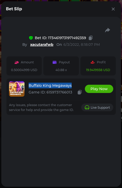 Cyber Wolf 10x https://bc.game/sd/?sd=10KDI5SGCTAHW3 Buffalo 50 62.3x https://bc.game/sd/?sd=10KCRQLOFXSNBN Rooster Fury 10x https://bc.game/sd/?sd=10KDIDU6F30UTV Satoshi's Secret 124 x https://bc.game/sd/?sd=10KDIW8SEZMD5F Little Panda 10 x https://bc.game/sd/?sd=10KDJ46PFLNQJ7 Twerk 10 x https://bc.game/sd/?sd=10KDJBSGACWS9F -