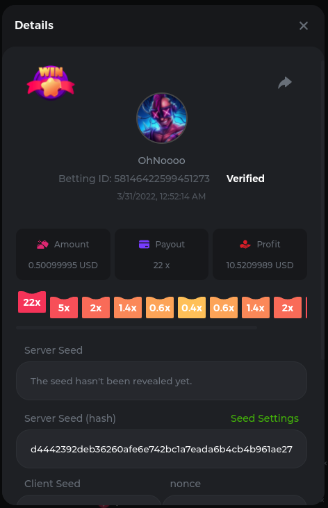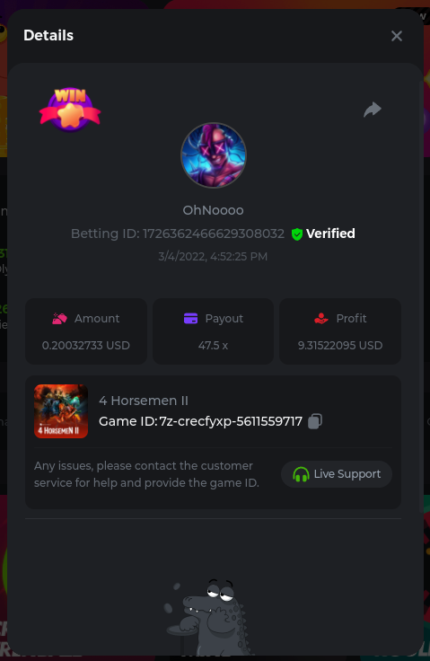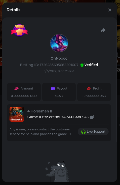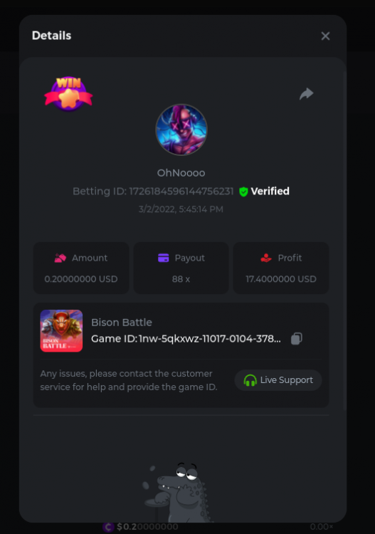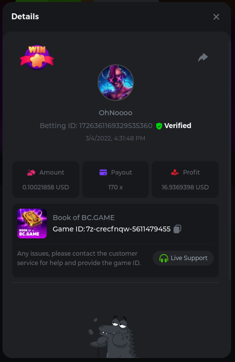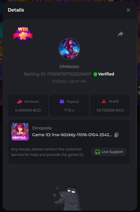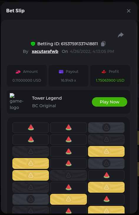 Easy Follow BCGame on Instagram (screenshot & IG username required). Post a photo or video on Instagram and tag BC.Game official profile (link to post & IG username required). Follow BCGame on Twitter (screenshot & twitter handle required). Like & Retweet the latest BC.Game Twitter post, tag at least 3 friends (link to post & twitter handle required). Follow BCGame on Facebook (screenshot & FB username required). Win a bet in Cave of Plunder on 7.50x payout (Completing all book symbols). https://bc.game/sd/?sd=10IK97QDGSLJPV Win a Sports bet with minimum odds being 1.3x (singles only) 1$ base min amount. Get a minimum 20x multi on Amatic Lady Fruits 100 Easter slot. Get a minimum 30x multi on Gamomat Ramses Book Easter Egg slot. https://bc.game/sd/?sd=10IKA3RC9WCTUB Enable 2FA for your BC.Game account (If it's already activated, keep it activated during event week). Medium Get a minimum 10x multi on Play&Go Easter Eggs slot . https://bc.game/sd/?sd=10IKAJU7TYZQC3 Win a bet in Roulette Single with betting on 0 only (36x). https://bc.game/sd/?sd=10IKAPIXLIF0GJ Get a 76x on Plinko. https://bc.game/sd/?sd=10IKB85MEHSSUR Get a minimum 60x multi on Wazdan Power of Gods™: Medusa Easter slot. https://bc.game/sd/?sd=10IKD69MDUBCIB Win a Sports bet with minimum odds of 2x (singles only) 1$ base min amount. Win a bet with Straight Flush in Video Poker (60x). https://bc.game/sd/?sd=10IKHG15WI1IQB Win a bet on Keno Single by selecting numbers 7, 30, and 8, Medium risk. (50x). https://bc.game/sd/?sd=10IKBI1TJRBWUR Get a minimum 90x multi on Big Time Gaming White Rabbit slot. https://bc.game/sd/?sd=10INY28VYQXUDV Win a bet by getting a natural Blackjack (A+K/Q/J/10) with only red cards in it. https://bc.game/sd/?sd=10IKCI4Q47Q0B7 Get a minimum 100x multi on No Limit City Bonus Bunnies slot. Hard Get a 49.50x on Wheel (50 segments, High risk). https://bc.game/sd/?sd=10IKIHFBAG6903 Get a 420x on Plinko (14 rows, High risk). https://bc.game/sd/?sd=10IO2W0TJPKWLV Win with a minimum 500x multi on Limbo. https://bc.game/sd/?sd=10IKH2KBUGNJF7 Get at least 300x multi on BGaming Hello Easter slot. Win with a minimum 999x on Crash. Get a minimum 100x multi on Pragmatic Chicken Drop slot. Get a minimum 100x multi on Push Gaming Fat Rabbit slot. Post a winning bet with 21 mines and 3 diamonds on Mines game, (569.25x). https://bc.game/sd/?sd=10IO1QLFAZMDQR Win a bet on Keno Single by selecting numbers 10, 11, 12 and 13, High risk, (259.00x). https://bc.game/sd/?sd=10INWO7SK5TN2R Win a Sports bet with minimum odds of 10x (any bet allowed) 1$ base min amount.