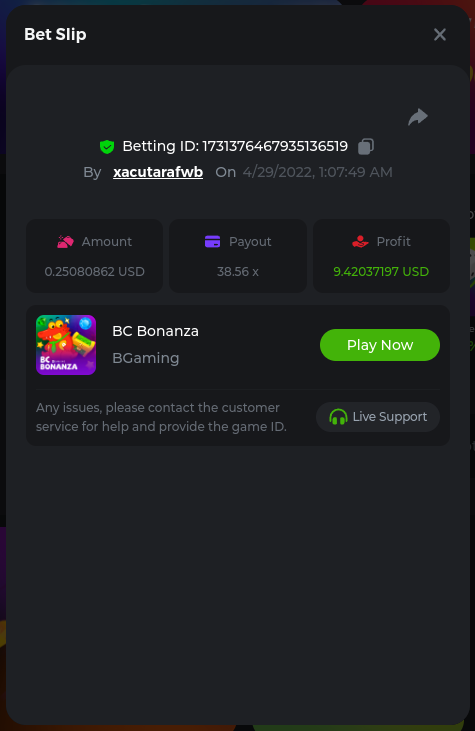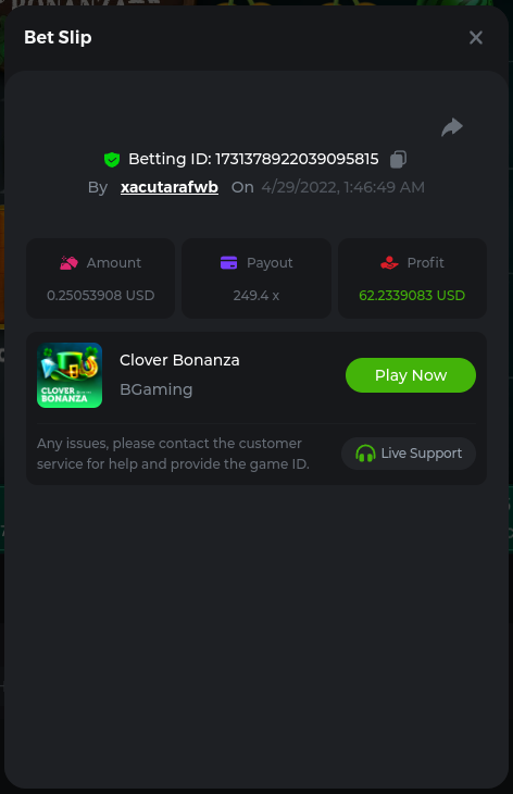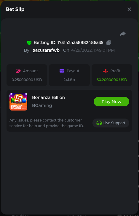 Bonanza Billion 241.8x https://bc.game/sd/?sd=10JGDRO125OX77 Aztec Magic Bonanza 244.64x https://bc.game/sd/?sd=10JF3A6J16XD03 Clover Bonanza 249.4x https://bc.game/sd/?sd=10JF54P23D73F7 Lucky Farm Bonanza 89.88x https://bc.game/sd/?sd=10JE0NI1AA9WCZ BC Bonanza 38.56x https://bc.game/sd/?sd=10JF2LWXSCZDHV