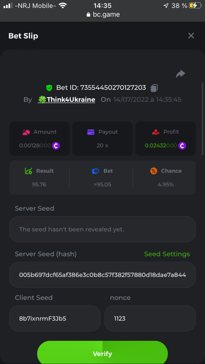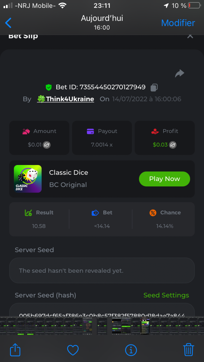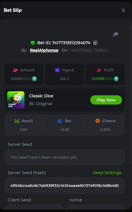 Member AkSyEn03 Posted July 14, 2022 Member Share Posted July 14, 2022 Challenge DICE Quoi de mieux pour finir la semaine qu'avec un challenge Dice classic de 48H ?Début 14/07/2022 a 16h fin le 16/07/2022 16h atteindre autant de multiplicateurs que possible dans la liste suivante... x7 X10 X13 X15 X20 X50 X70 X100 X130 X150 X200minimun pour etre qualifier> 3points Chaque pari correct comptera pour un point, les joueurs avec le plus de points seront les gagnants. si le nombre de joueurs augment le prix aussi !! Récompenses1ère place... 10BCD 2ème place... 7BCD 3ème place... 4BCD Règles :Ne publiez pas d'anciens paris Vous devez gagner le pari Vous ne pouvez gagner qu'une seule place Si vous enfreignez l'une des règles, votre pari sera annulé. Vous ne pouvez pas enregistrer les paris pour la fin, dès qu'ils sont corrects, ils doivent les partager.conditions mise minimum > 0.0001$ et jb interdis Il n'y a pas de niveau minimum Être de la chambre Française Vous ne devez avoir qu'un seul commentaire. Si vous souhaitez ajouter plus de paris, modifiez simplement le commentaire et ajoutez-les. En cas d'égalité, le joueur qui devine le pari en premier gagne. Comment entrer Accédez au jeu pour sélectionner votre ID de pari, cliquez sur l'icône Partager (↷) puis sur Copier le lien. Revenez au fil de discussion, collez le lien dans le champ "Répondre à ce sujet..." Par exemple : https://bc.game/sd/?sd=10IKIK3BP5T4PF Dans le même message, téléchargez une capture d'écran de votre victoire en cliquant sur l'ID de jeu AVEC le mode AFFICHAGE EN USD ACTIVÉ (accessible en bas du menu déroulant de votre portefeuille en haut) et Soumettre une réponse. Prêt! De cette façon, nous pouvons nous assurer que votre pari répondait à l'exigence minimale au moment de le placer : ❤ bonne chance a tous❤ Link to comment Share on other sites More sharing options...