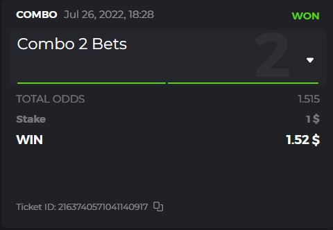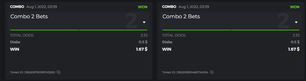 Moderator Mat Posted July 25, 2022 Moderator Share Posted July 25, 2022 $250 - BC.GAME SPORTS PARLAYS CHALLANGES #14 Start: 25, July 00:00 UTC Ends: 31, July 23:59 UTC Hello, ladies and gentleman! Sports Parlay Challenges #14! With a prize pool of $250, the Top 7 takes home a grand prize, and the remaining $60 will be split among all other entrants! What is the challenge? Place a Sports Parlay/Combo Bet to qualify for the challenge Only 1 parlay per match. A parlay consists of two or more sports bets on a single ticket with a higher multiplier. The ODDS for each game will be added up and counted as total points. Minimum VIP No Minimum VIP Level Minimum payment There is no minimum multiplier, however, only the top 5 winning parlay multipliers will win the grand prize! Minimum bet size Equivalent to US$ 0.50 Eligible currencies All cryptocurrencies are eligible (except JB) Rewards available 1st place.......$70 2nd place.....$50 3rd Place...... $30 4th Place...... $20 5th Place...... $10 6th Place...... $5 7th Place...... $5 The remaining $60 will be split among all other participants who meet the minimum requirements and minimum stake. How to enter: To participate, post your Ticket ID, along with your Parlay link, as a reply to this thread as follows: Link bet: https://bc.game/sports/?bt-path=%2F%3FbtBookingCode%3D561A9D1 + Ticket ID 2126602890796736992 If you don't know how to get your sports betting link, go here! Along with the screenshot of your accumulated ticket. Ticket ID 2126602890796736992 If a selection results in a void or push, the bet will remain eligible as long as it remains equal to or greater than a triple bet and meets the odds requirements. Bets withdrawn will not be counted. Hedging is strictly not allowed Please combine all your hits into a SINGLE post. Edit your existing post to get additional hits, don't create a new post. Bets must be placed during the time window specified above. This thread will automatically lock when the time period ends. One (1) entry per family. If someone finds multiple prizes, they will be disqualified from the challenge as well as all future challenges. Failure to follow the instructions will result in the cancellation of your submission. By entering this challenge, you acknowledge that BC.Game has final decision rights over results and placement. All prizes will be paid out in BCD within 72 hours of completing the challenge.. Link to comment Share on other sites More sharing options...