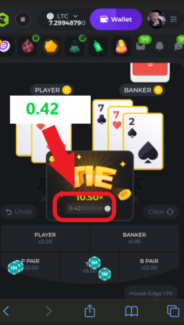 UnwillingNate Posted July 29, 2022 Author Share Posted July 29, 2022 In this case, i should receive 0.84. because i won pair and tie in total x21 as it shown. I dont know, maybe BC game need to explain. Its funny when they told if you single bet pair, you will win 12x but if you bet in tie also. Your winning is (12x + 9x )/2 = 10.5 because double side bet. ready to this if you double side pairs bet (12x + 12x )/2 =12x How insanity of their explanation? Dont believe me go try the game for yourself lol. Dear oh dear the baccarat, sorry it a scam payout, suggest that only place a single bet only. Otherwise you will get rob instant Link to comment Share on other sites More sharing options...