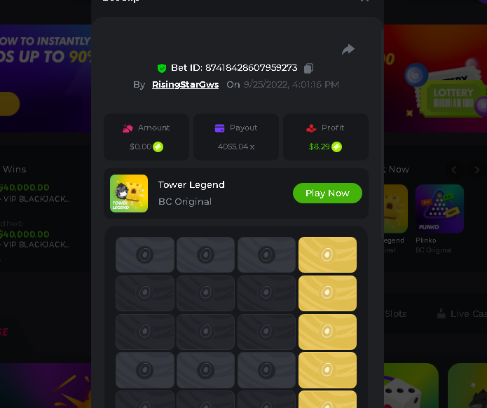 YESLLLLL Posted September 25, 2022 Share Posted September 25, 2022 (edited) 3 hours ago, Black Tiger said: Read Carefully Before Start To Hunt Daily Challenges #25 : Tower Legend Hunt :Win the highest pay outMin Payout requirement 100xMin Level 4️Duration Starting : Now End time : 23.59 UTC Time How to Join? Only Post on BC.Game Telegram Official HEREMake screenshot + paste your bet link + UID or Profile link To get bet link can check HERE Any coin allowedReward Prizes 1st Place....... $7 BCD2nd Place..... $5 BCD3rd Place...... $4 BCD 🎖4th Place......$3 BCD5th Place......$2 BCD 🏵 Winners will be announcing next day after Roll Point ========================== On Going Event $4,000 Top Tier Gameart Multiplier Battle! $2,500 Prestige Savior Sword Challenge #47 Soccer Top 5 league 100% cashback !#2$250 BC.GAME SPORTS PARLAYS CHALLENGES #22$500,000 Spinomenal's Grand Holiday Tournament TOUCHDOWN! NFL 50% Cashback ! #2 https://bc.game/sd/?sd=10TPHINK1PARDF Telegram user name : @Hwar5555 Edited September 25, 2022 by Jbstar247 Link to comment Share on other sites More sharing options...