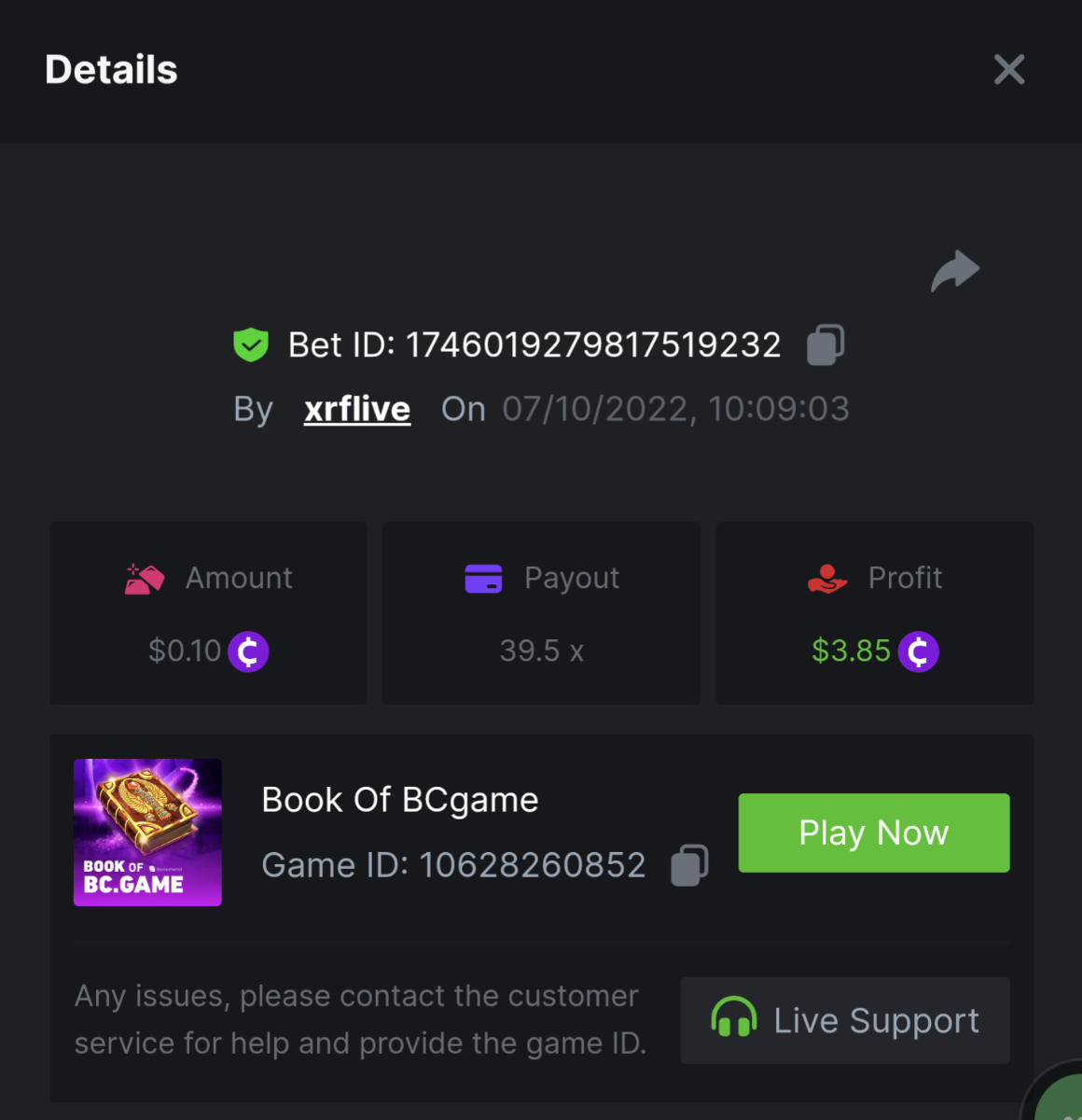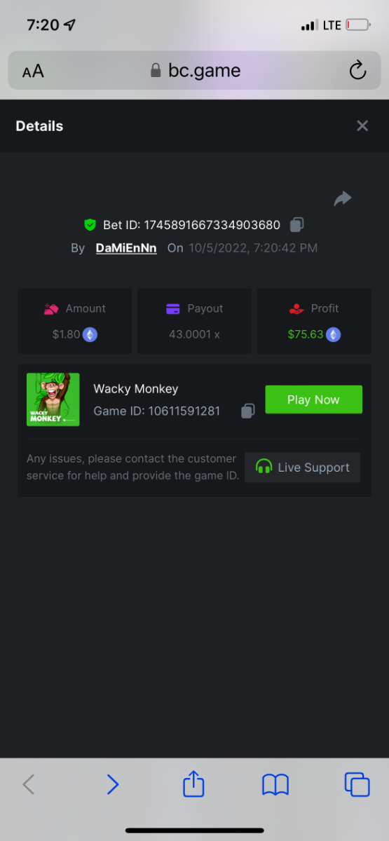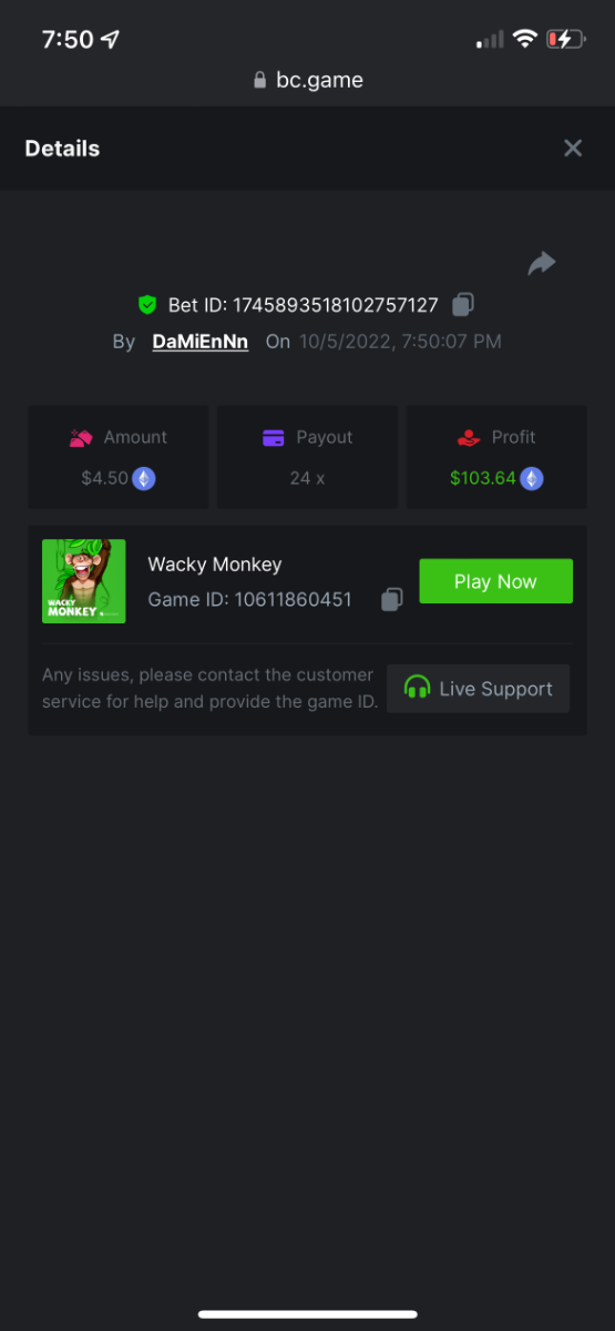 https://bc.game/#/sd/10UG2UYCK614B7 43.0001x $1.80 bet