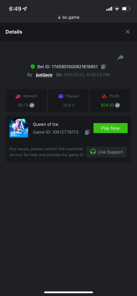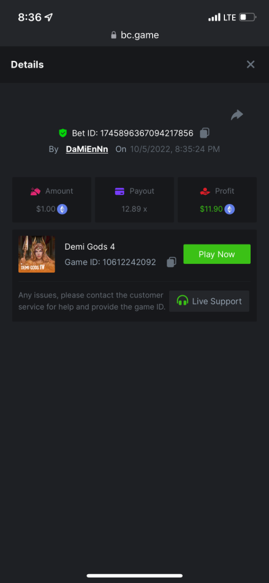 https://bc.game/#/sd/10UG7JK2ALLC7N 12.89x $1.00 bet