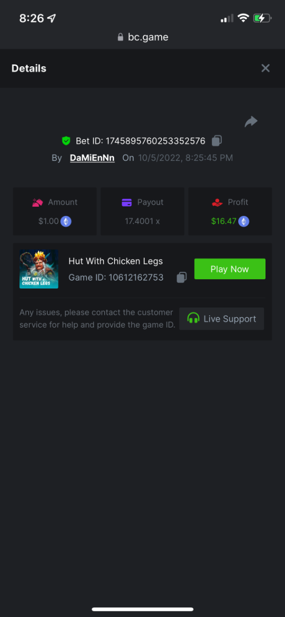 https://bc.game/#/sd/10UG6W6QL80UFN 17.4001x $1.00 bet