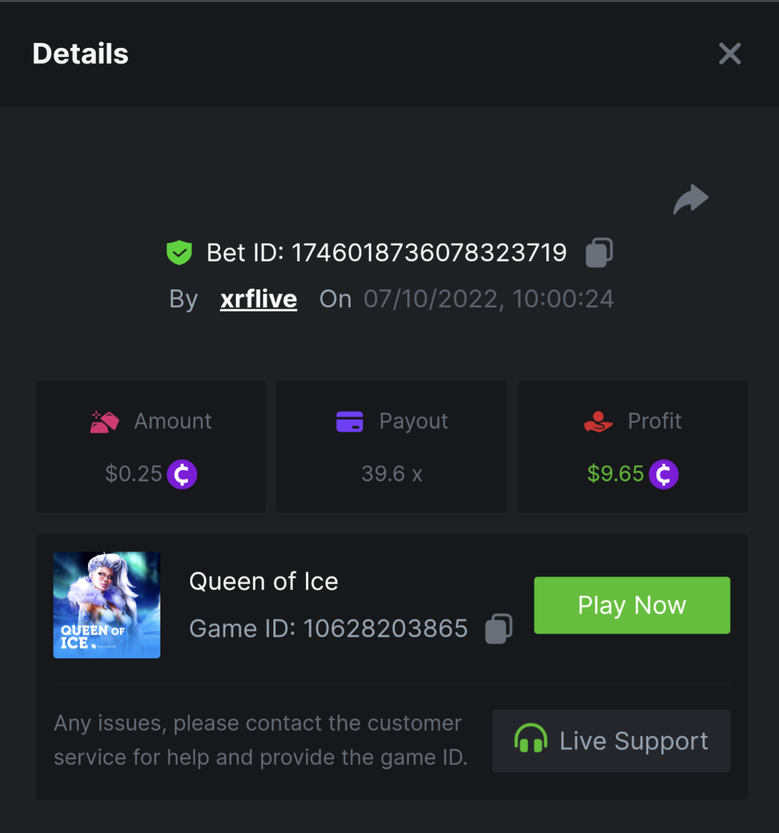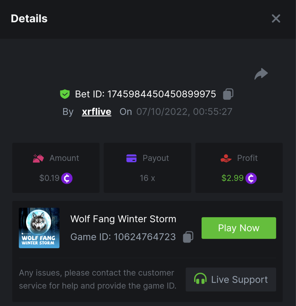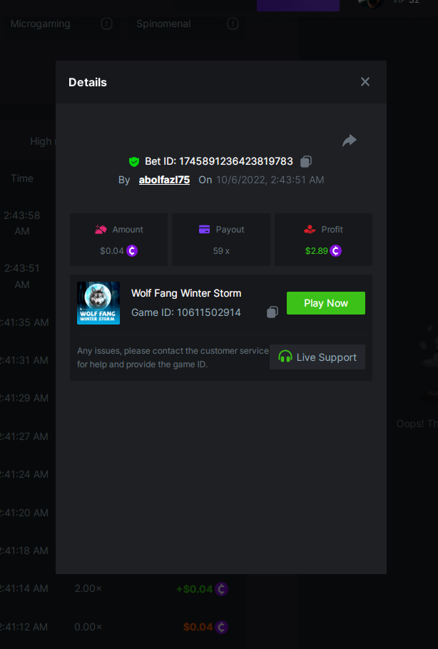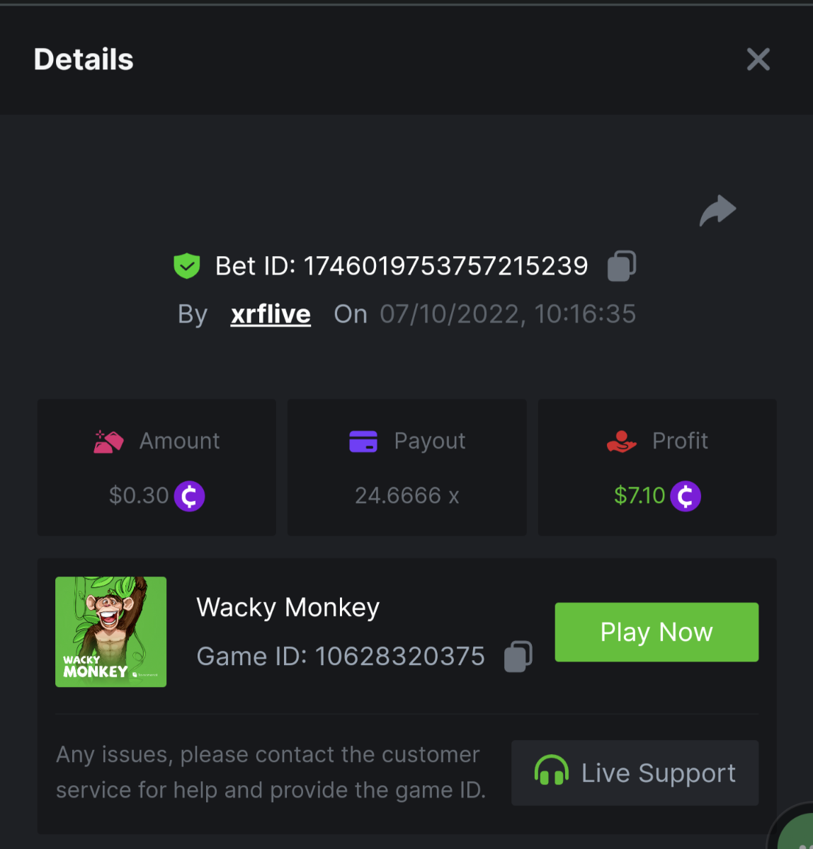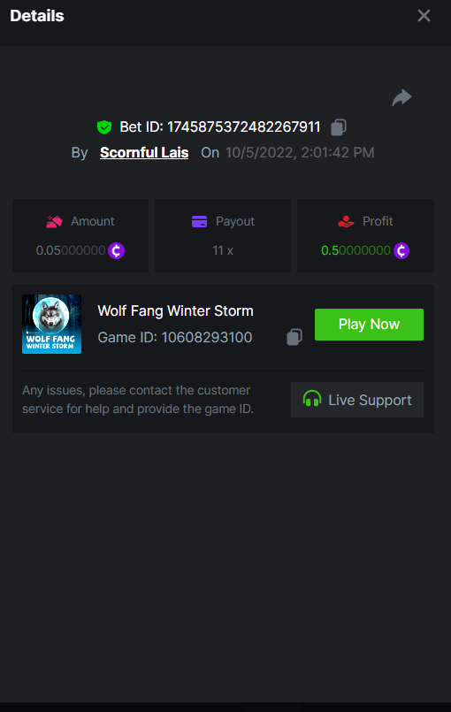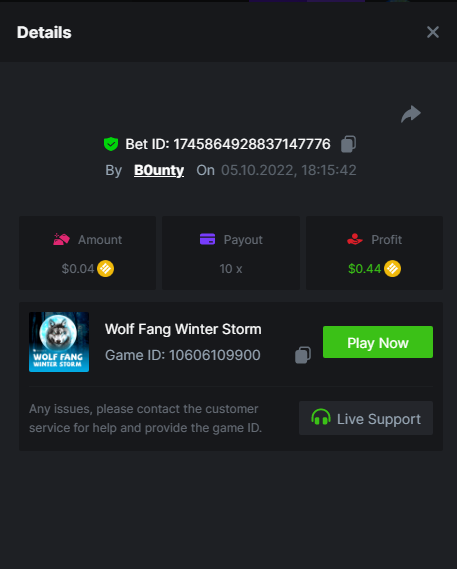 • In the same post, upload a screenshot of your win by clicking the game ID WITH VIEW IN USD mode ENABLED (accessible at the bottom of dropdown menu for your wallet up top, and Submit Reply. Done! This way, we can ensure that your bet indeed met the minimum requirement at the time of placing it: