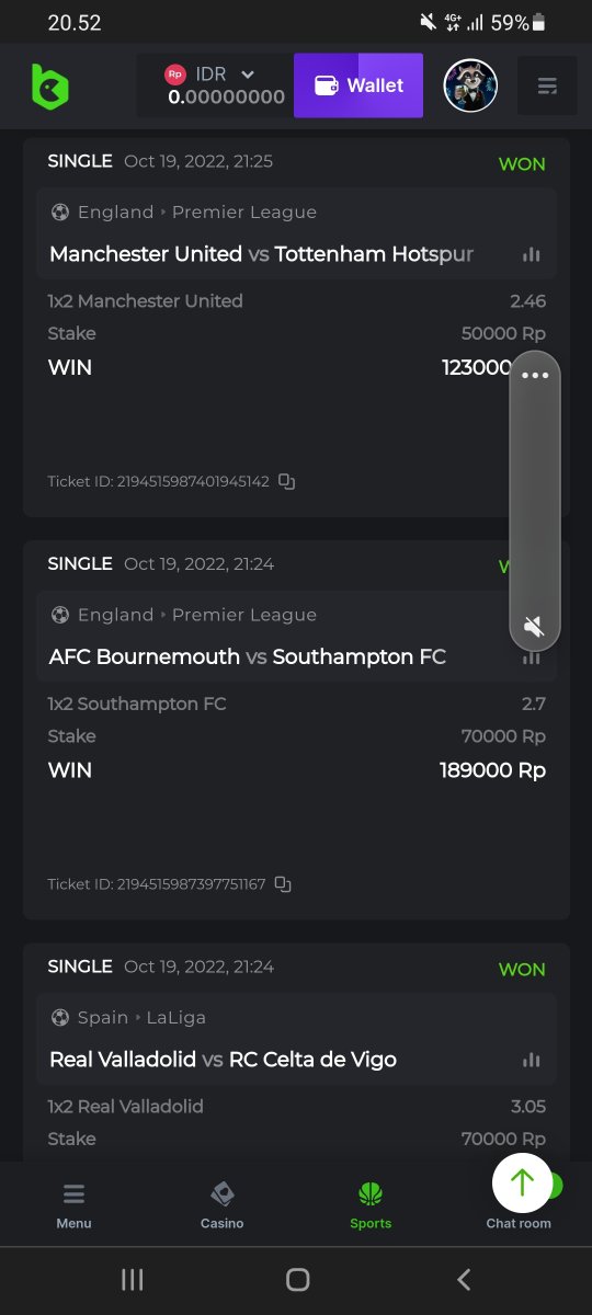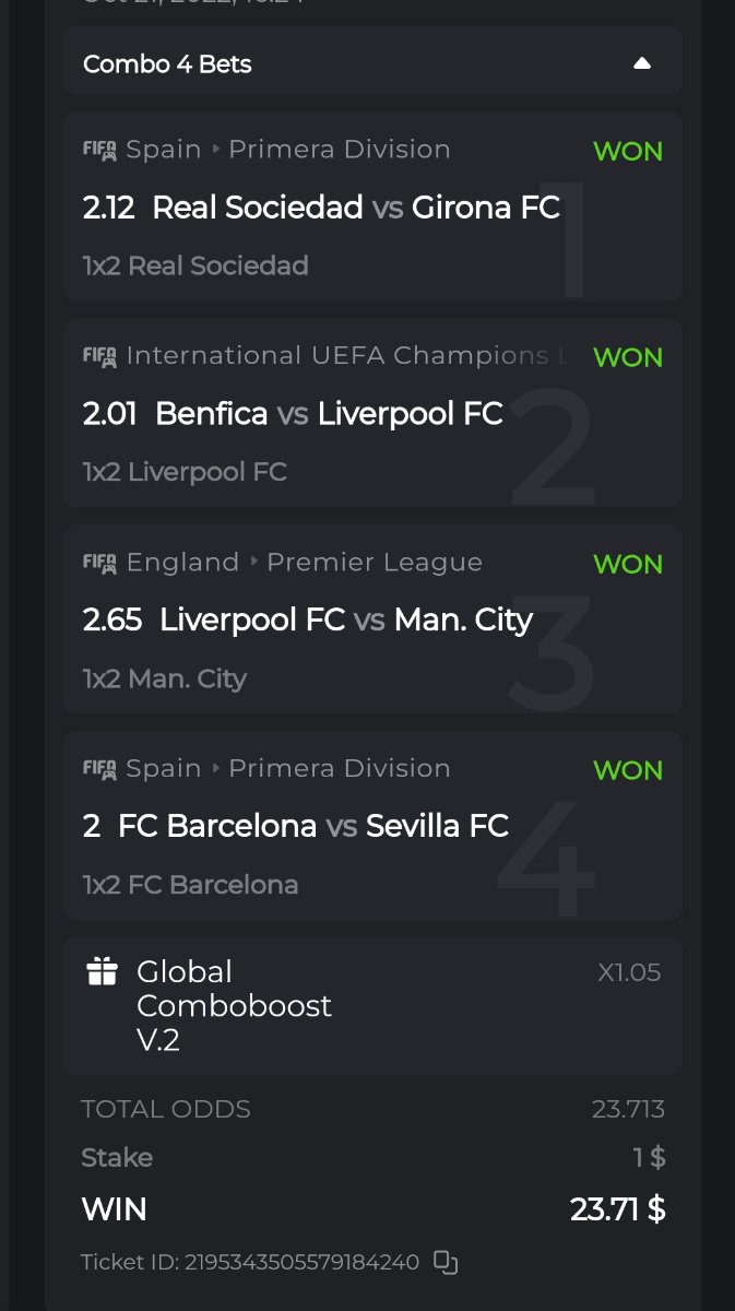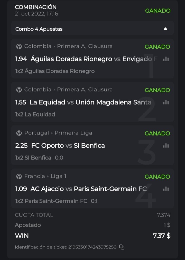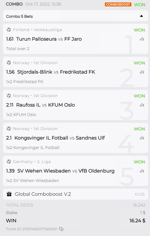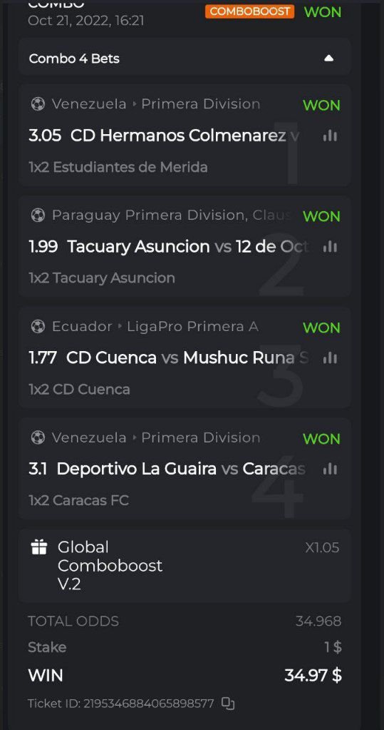 Zinzunzan Posted October 19, 2022 Share Posted October 19, 2022 The most recent parlay i won. I couldn't get the betslip link but here is the ticket ID and screenshot. Goodluck everyone !!! Ticket ID : 2193186155258851377 Link to comment Share on other sites More sharing options...
